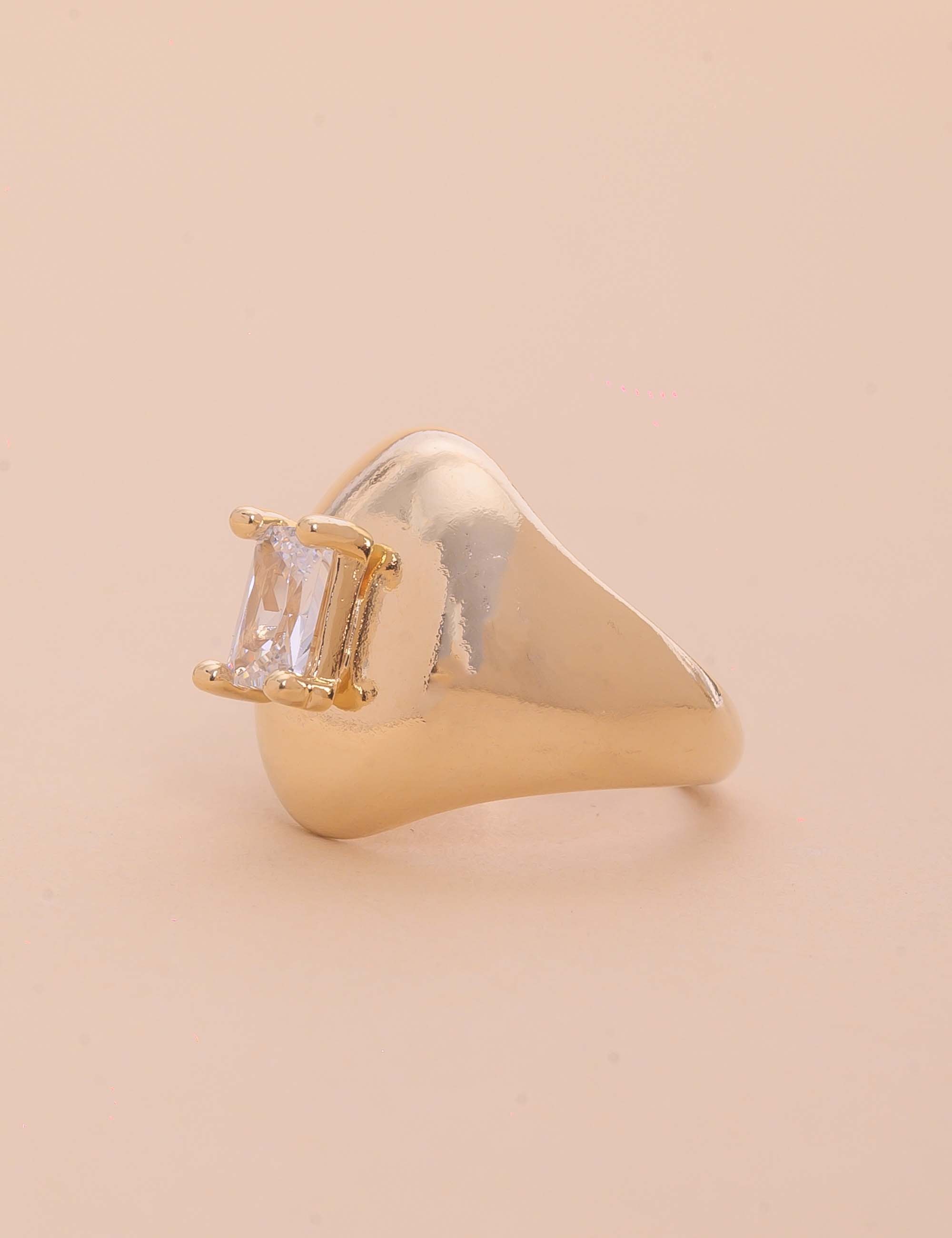 Anel Dedinho Cristal Retangular Ouro