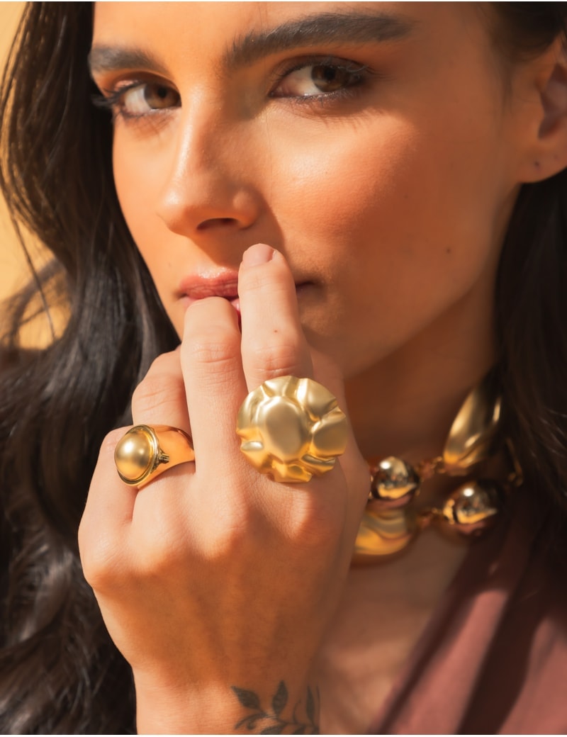 Todos os nossos metais são banhados a ouro, possuem camada protetiva para bijuterias finas e também possuem camada de metal precioso em sua composição. As bijuterias precisam de cuidados, limpe-as com flanela seca e macia, evite contato direto com cosméticos, areia, praia e piscina.