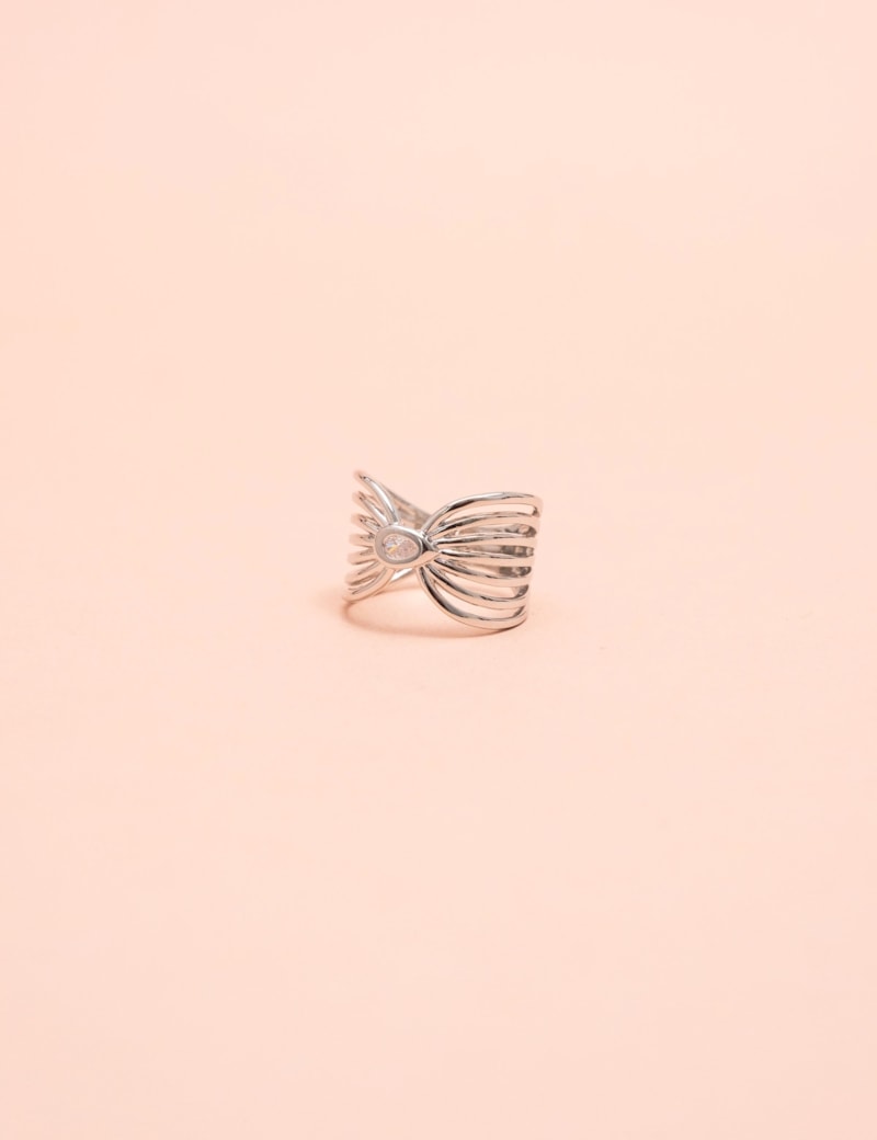 Peça: Anel com design orgânico e cristal. Este acessório não apenas complementa o seu estilo, mas também adiciona uma dose extra de singularidade e elegância ao seu visual.