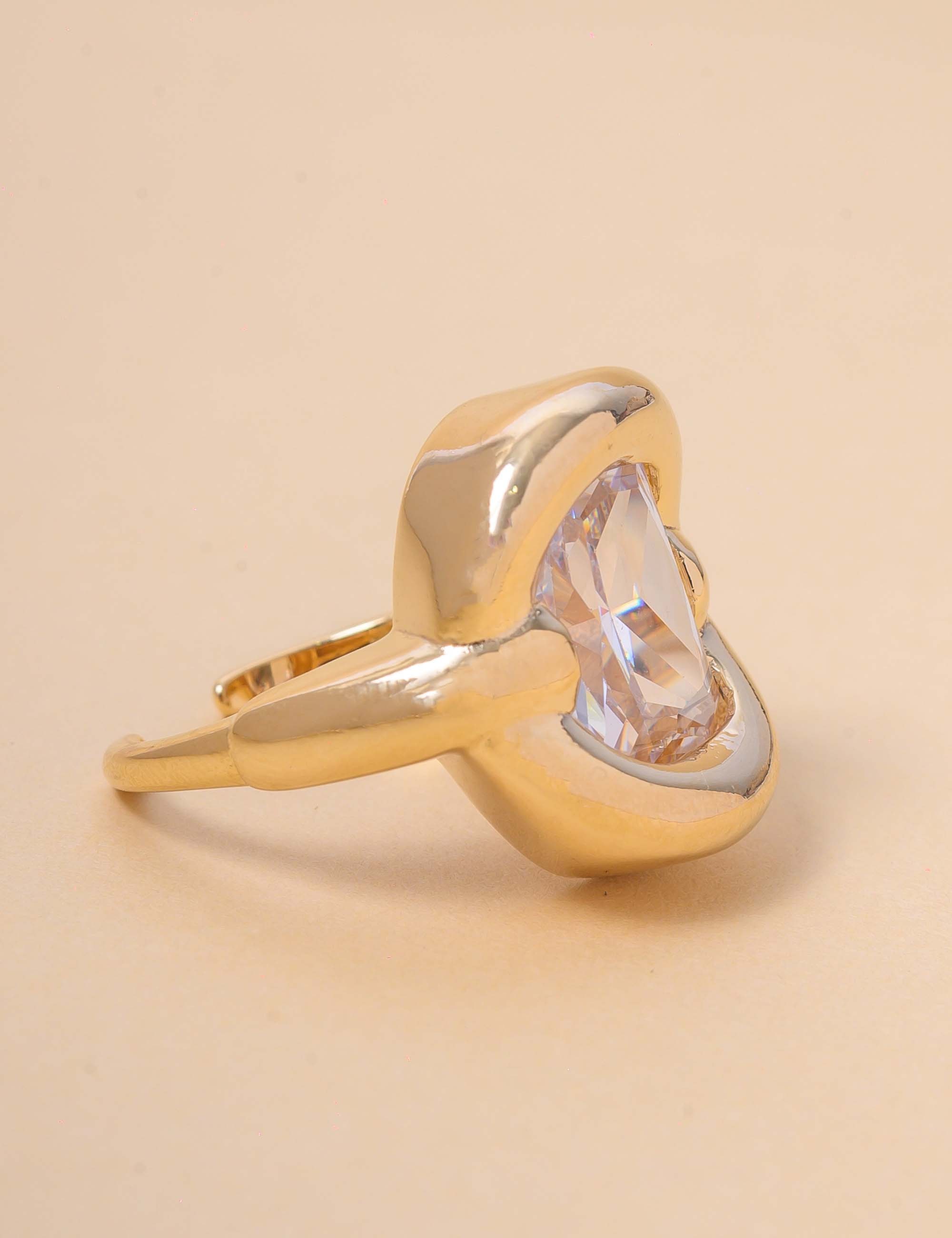 Anel ouro com cristal retangular, elegante e sofisticado. Uma peça que adiciona brilho e estilo ao seu visual, perfeita para usar em qualquer ocasião.
