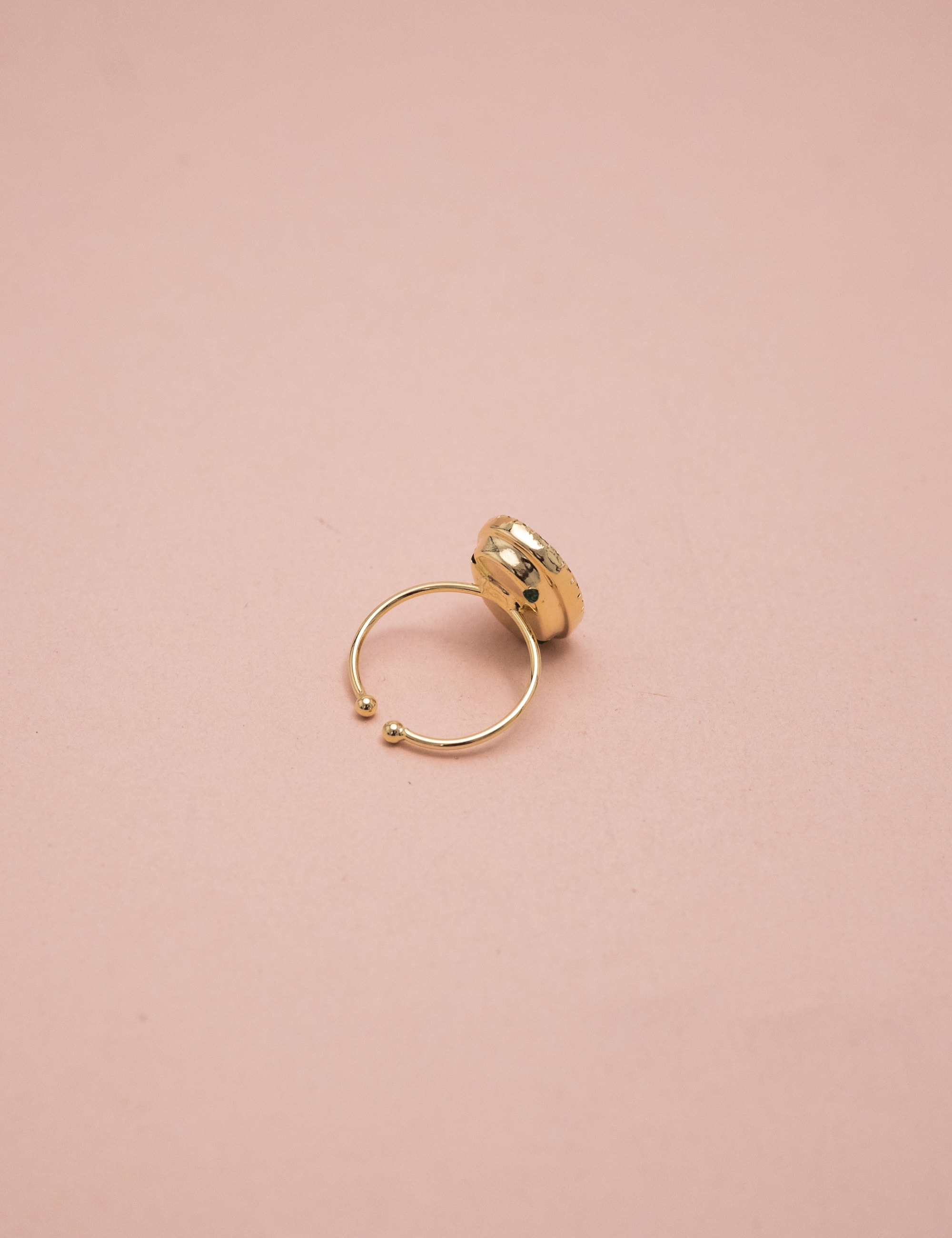 Anel em metal com acabamento delicado e detalhes em pedra cristal. Design moderno, brilho sutil e aro regulável para se ajustar perfeitamente ao seu dedo.