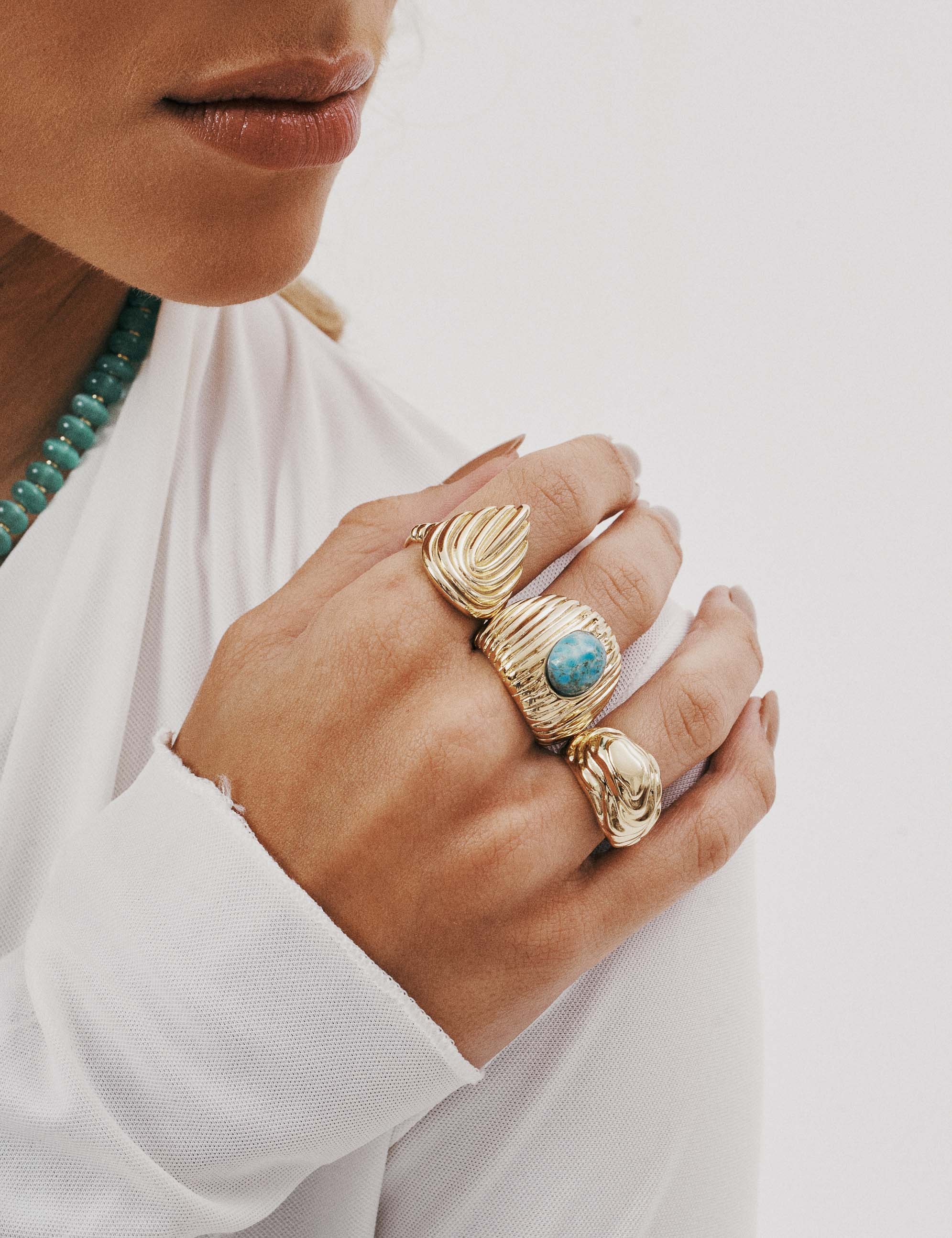 Anel pedra turquesa, elegante e sofisticado. A pedra roxa adiciona cor e charme ao seu look.