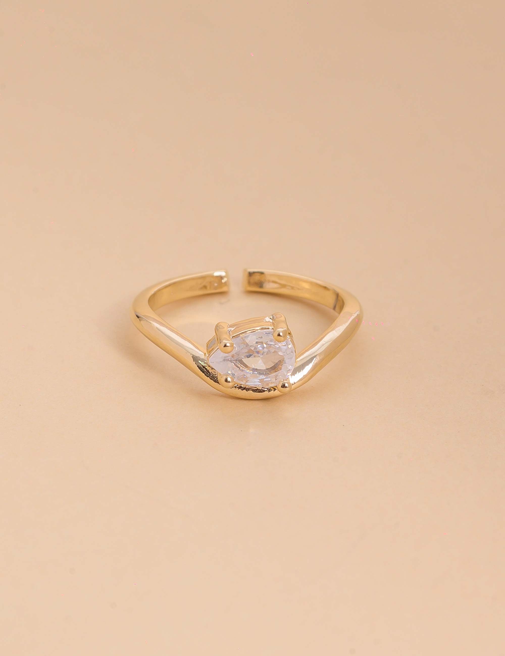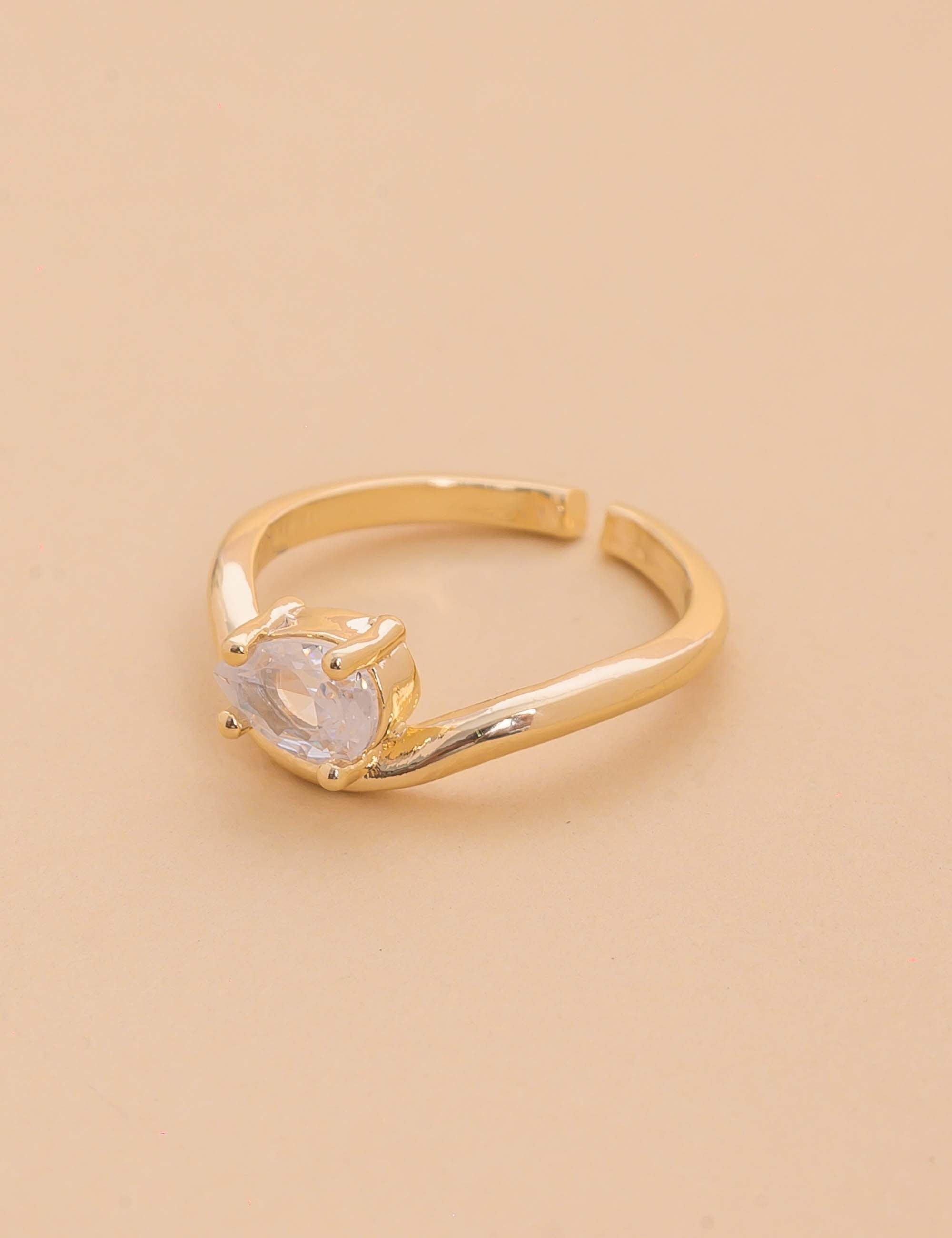 Anél regulável de dedinho, ouro com cristal em formato de gota, delicado e perfeito para complementar qualquer look.