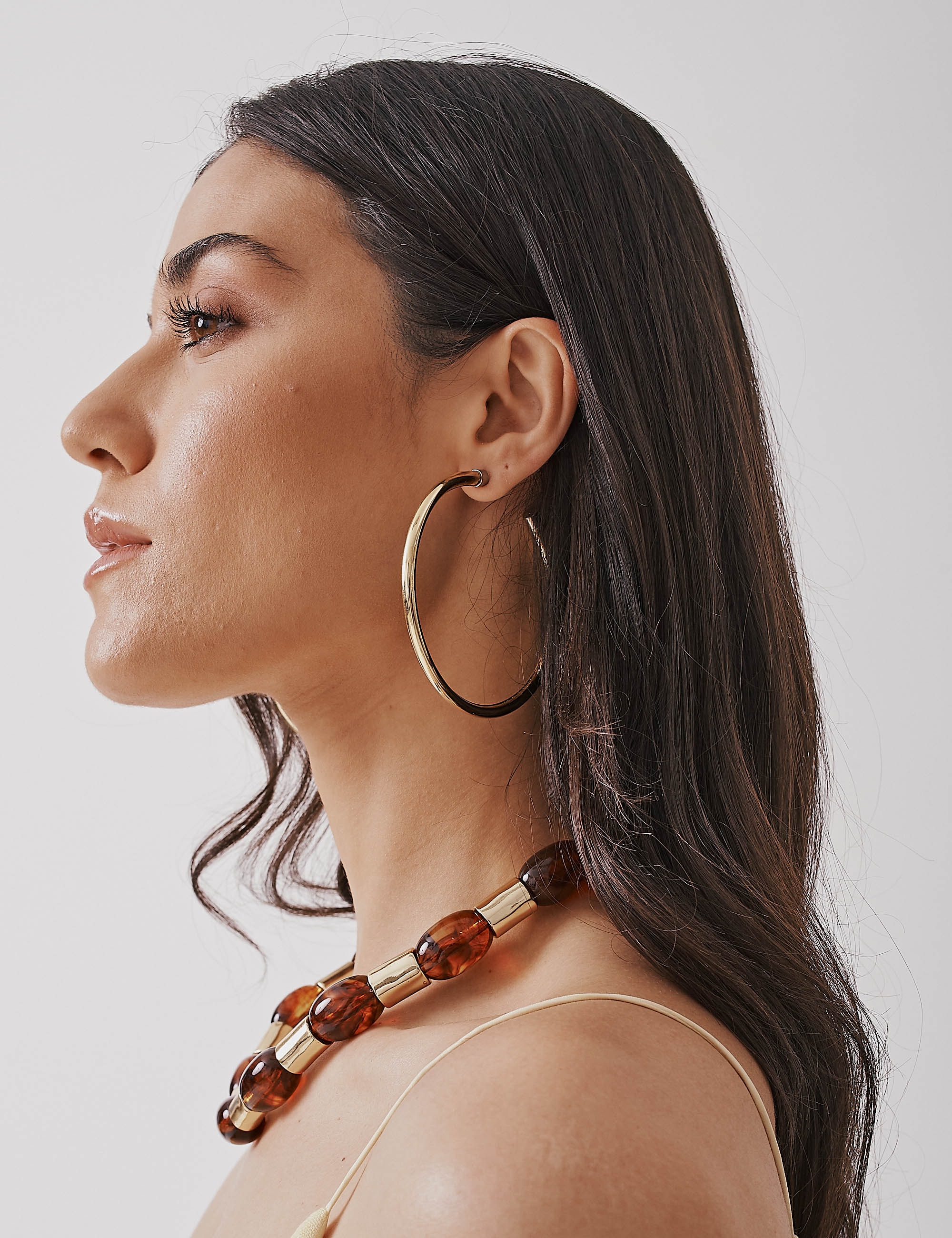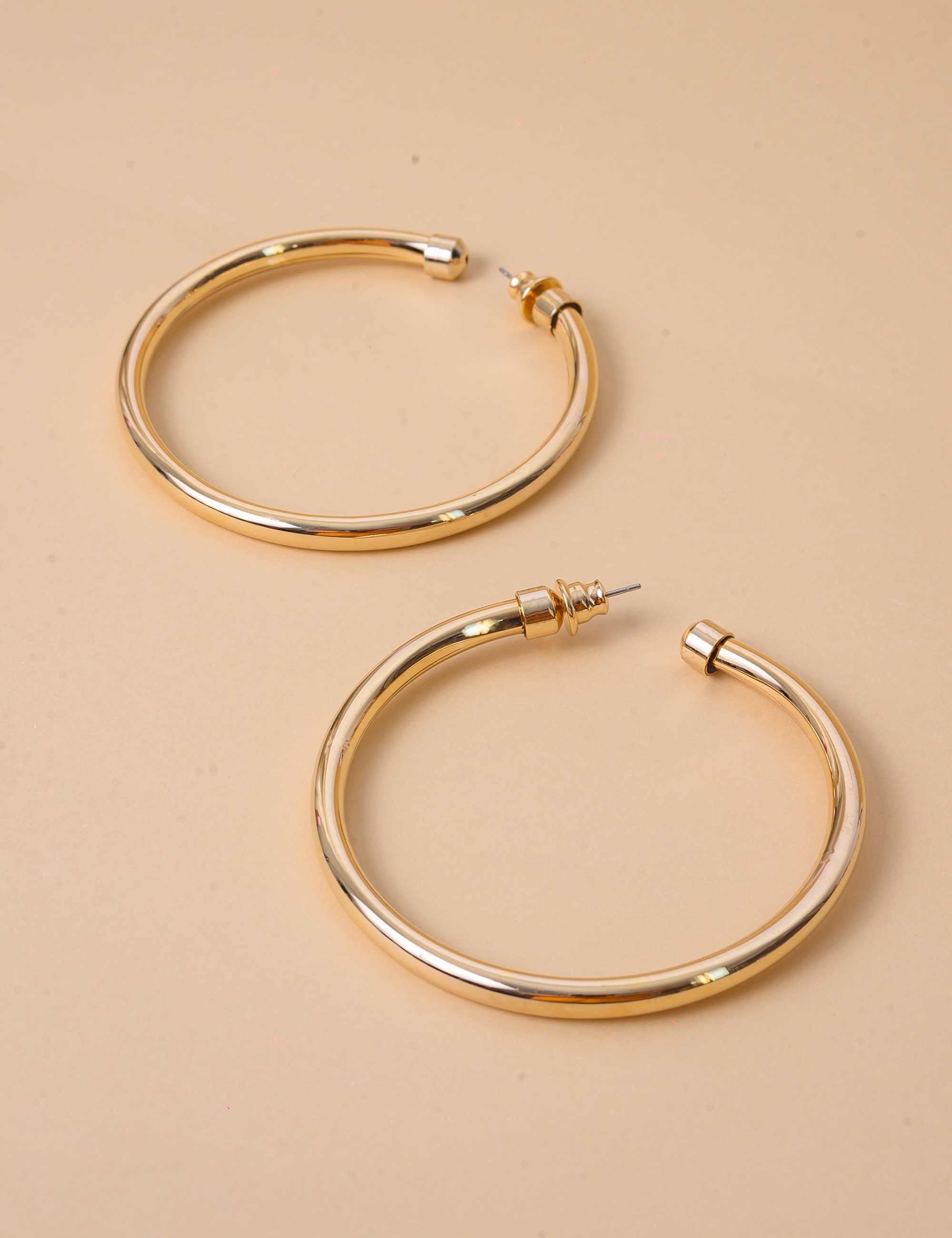 Argola grande com banho de ouro liso, perfeita para quem ama peças clássicas com presença. Seu design clean e acabamento polido garantem brilho intenso e um visual elegante, ideal para compor looks do dia a dia ou dar um toque sofisticado à produção noturna. Um acessório atemporal, versátil e indispensável no porta-joias.
