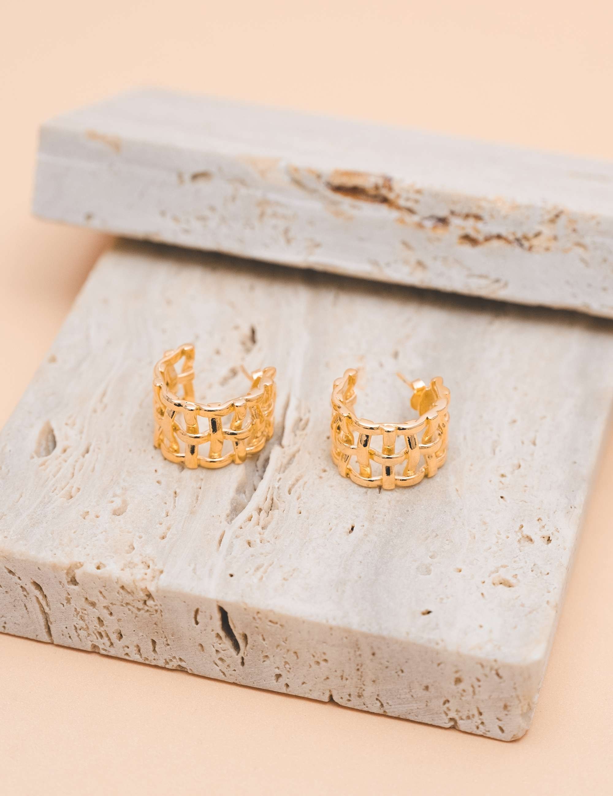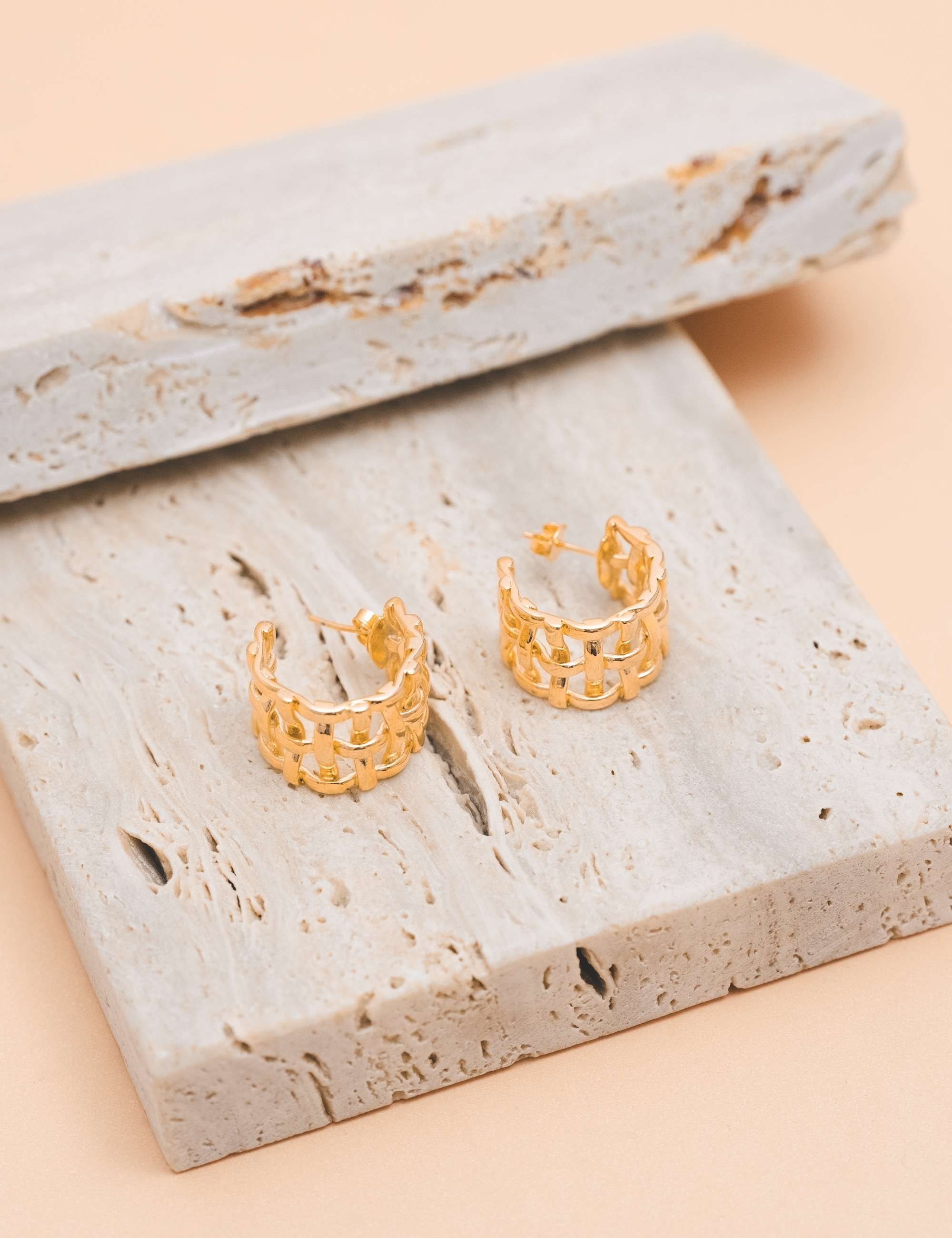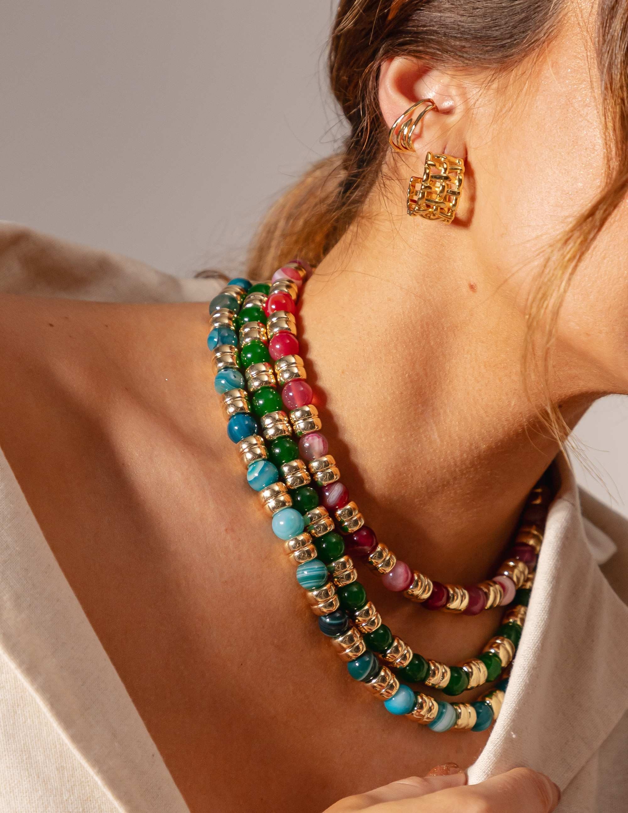 Todos os nossos metais são banhados a ouro, possuem camada protetiva para bijuterias finas e também possuem camada de metal precioso em sua composição. As bijuterias precisam de cuidados, limpe-as com flanela seca e macia, evite contato direto com cosméticos, areia, praia e piscina.