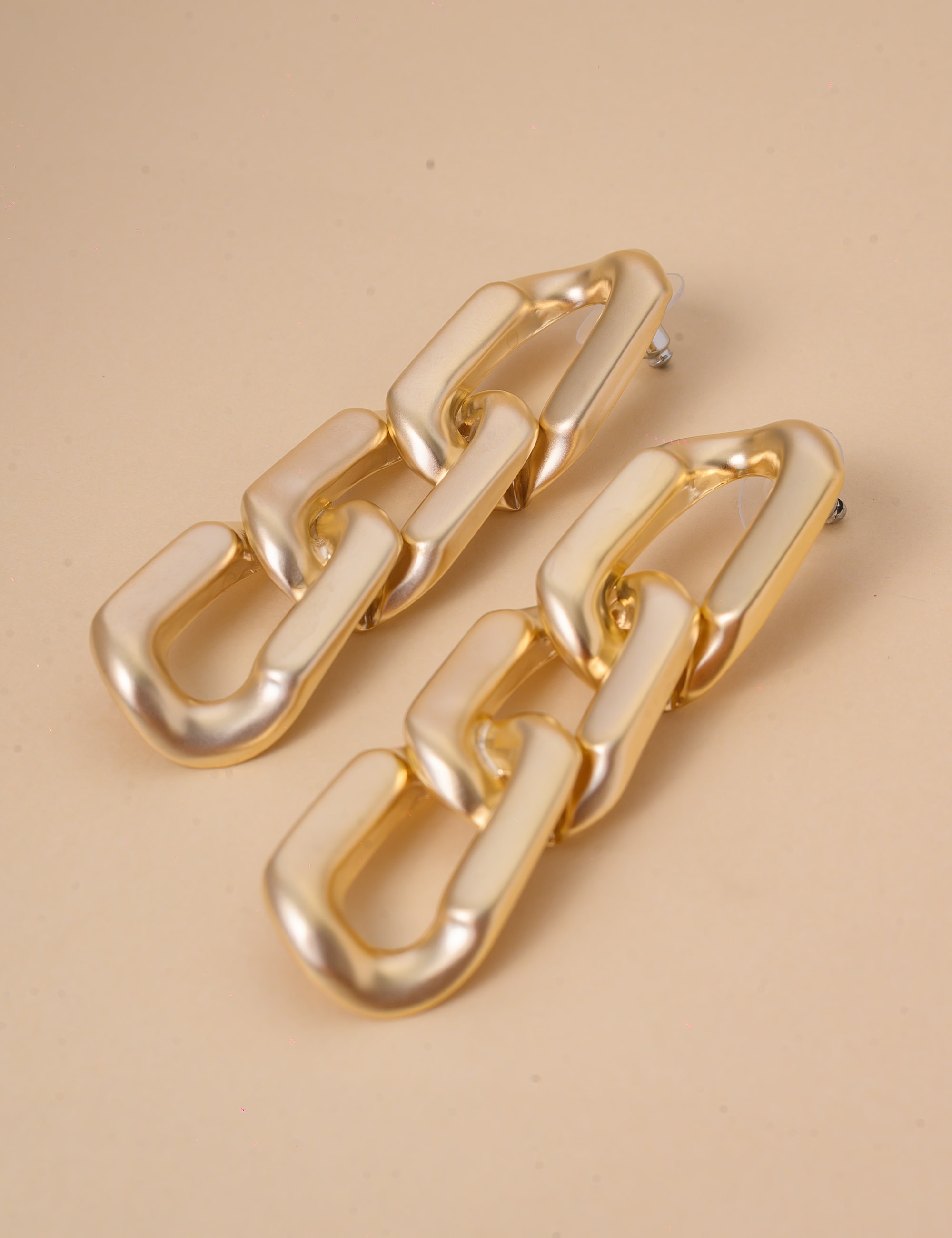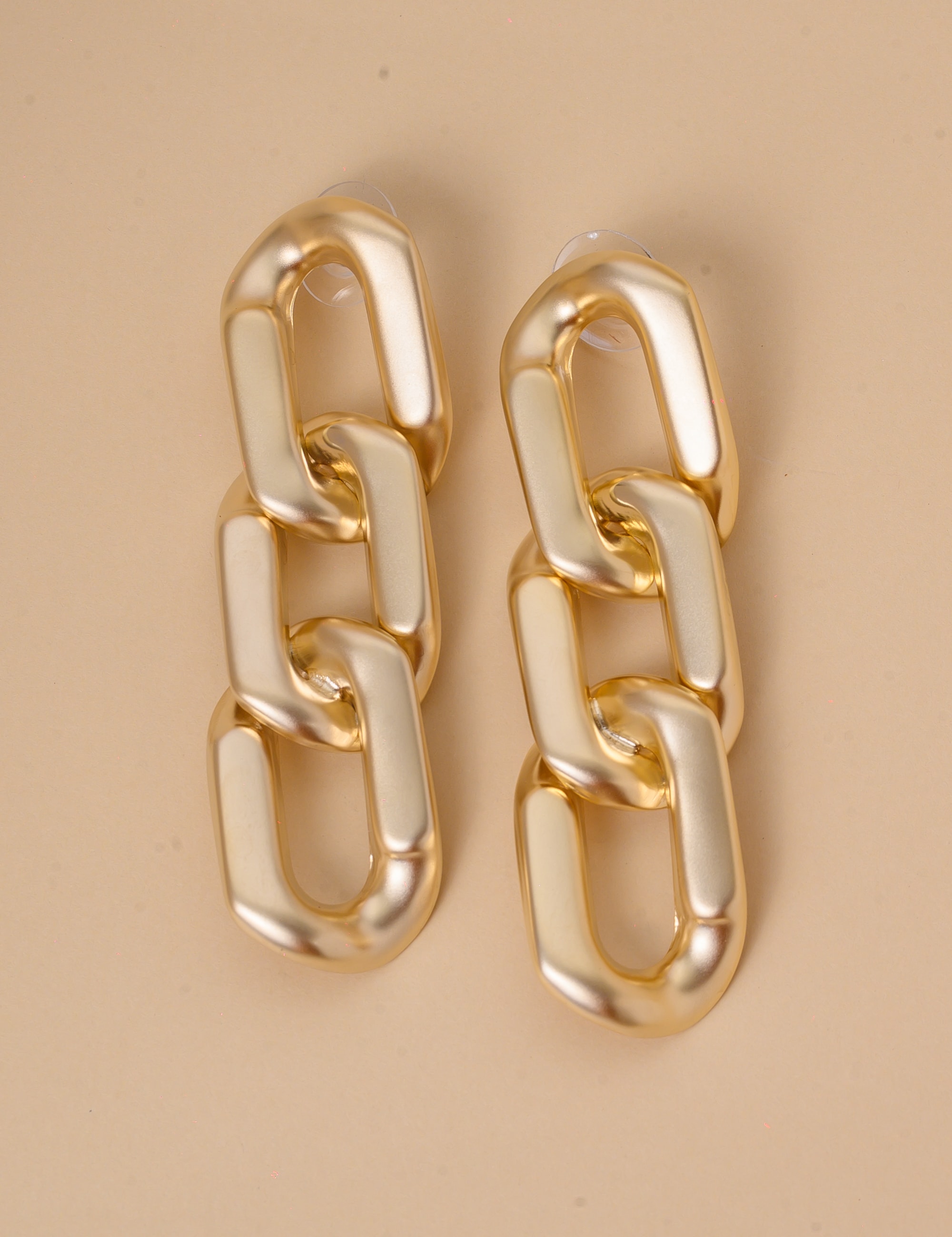 Brinco moderno e estiloso em formato de corrente, com acabamento em banho fosco que confere um visual sofisticado e contemporâneo. Sua estrutura articulada proporciona leveza e movimento, tornando-o uma peça versátil para composições elegantes ou urbanas. Ideal para quem busca um acessório marcante com design minimalista e acabamento diferenciado.