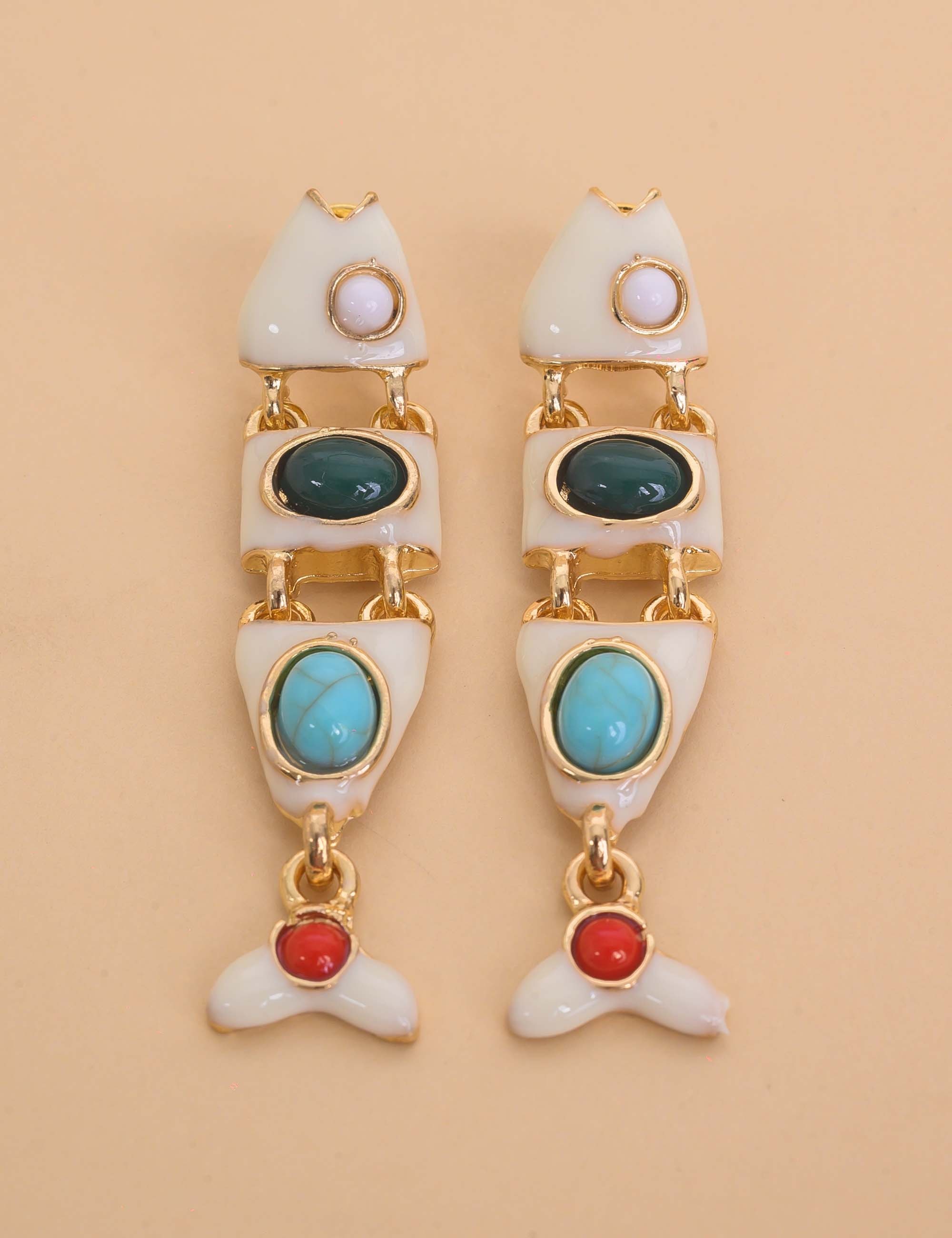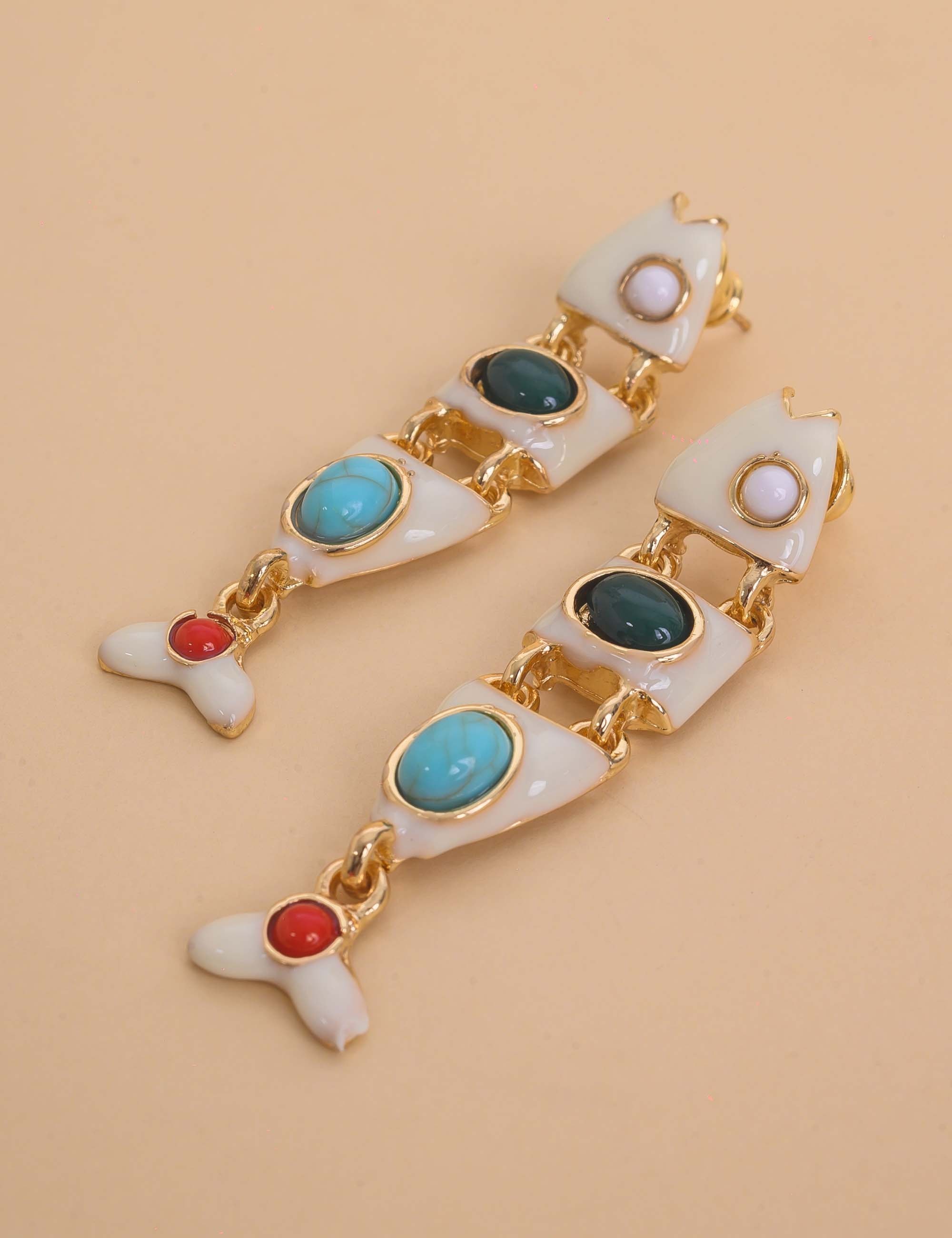 Brinco resinado off-white, banhado a ouro em formato de peixe, delicado e cheio de estilo. Uma peça charmosa que traz um toque lúdico e sofisticado para qualquer produção