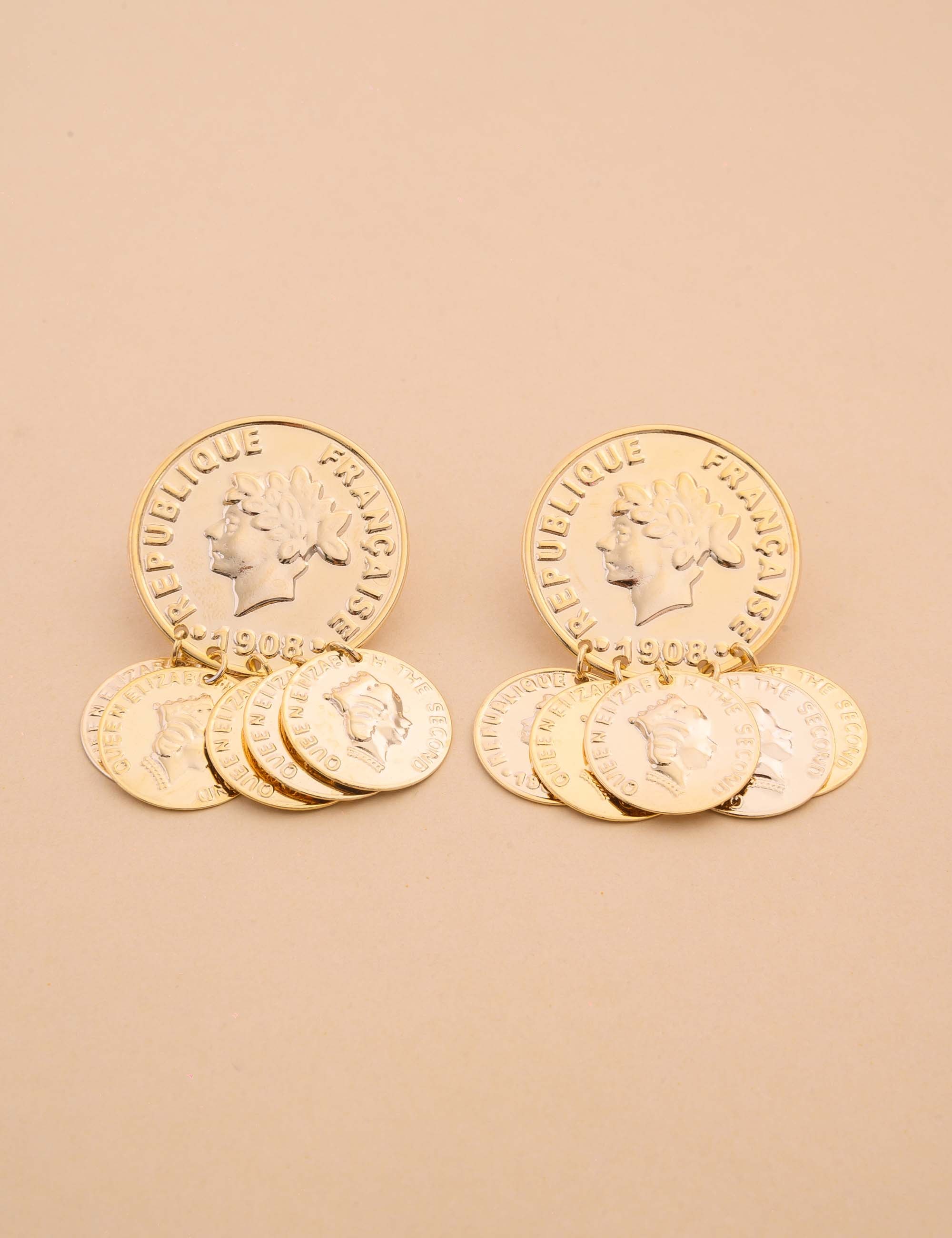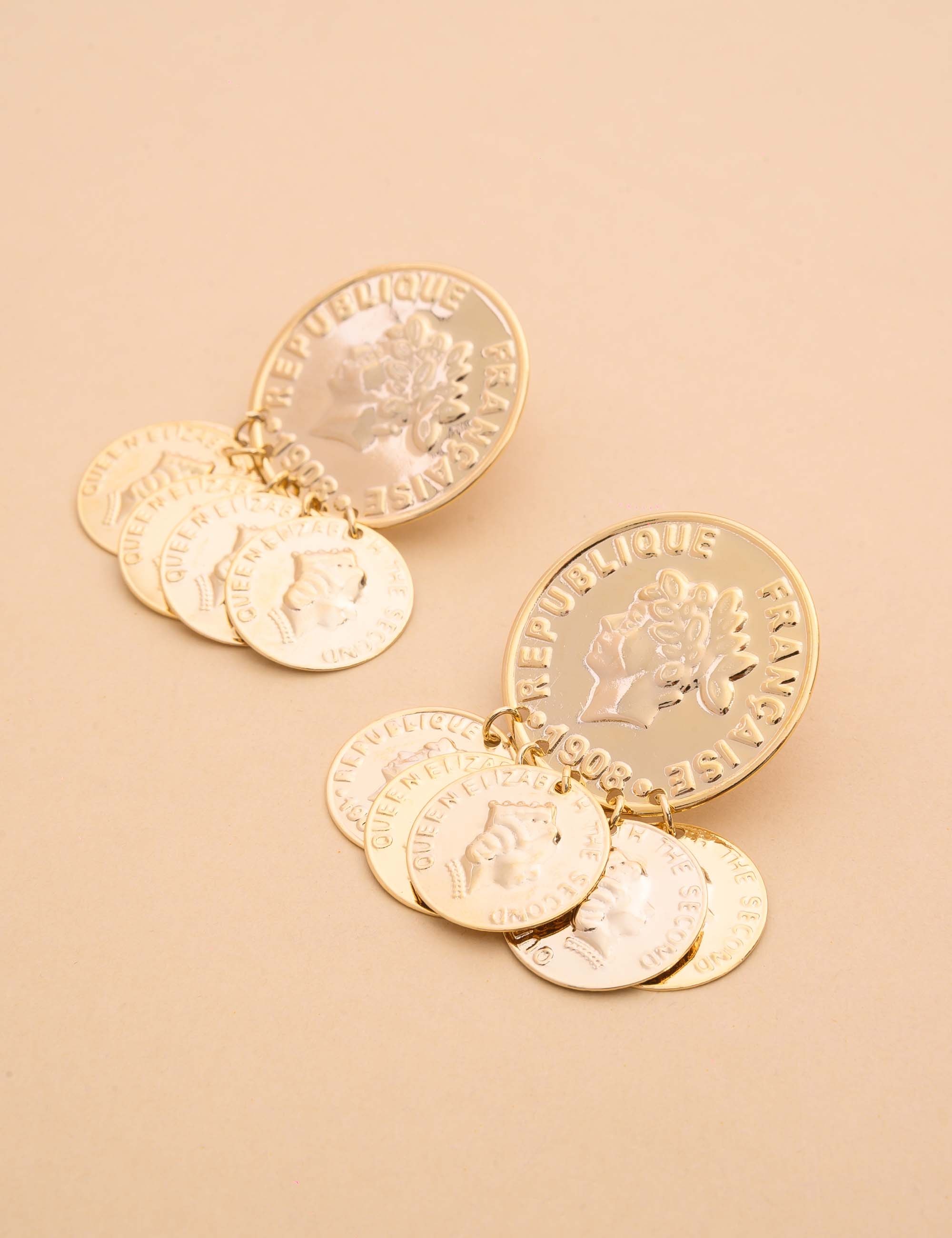 Brinco leve e delicado com pequenas medalhas. Possui banho de ouro, trazendo brilho sutil e toque moderno. Ideal para usar no dia a dia ou compor um look mais elegante.