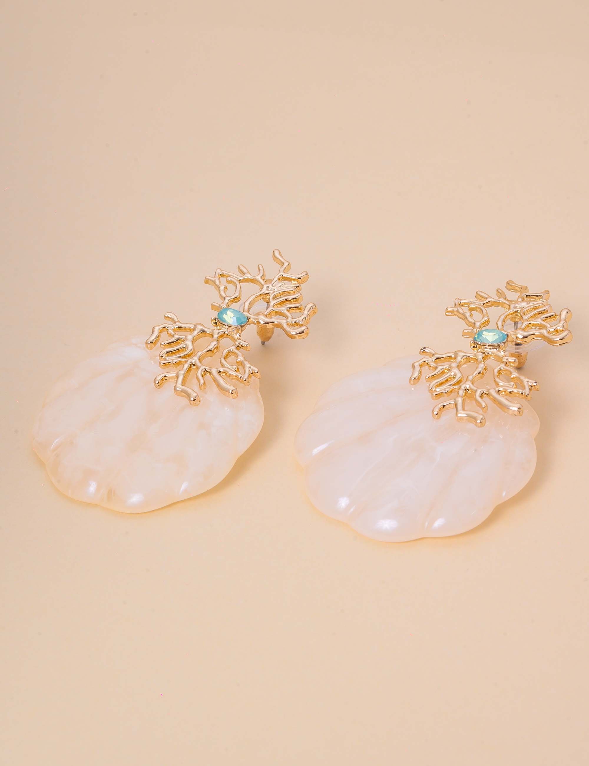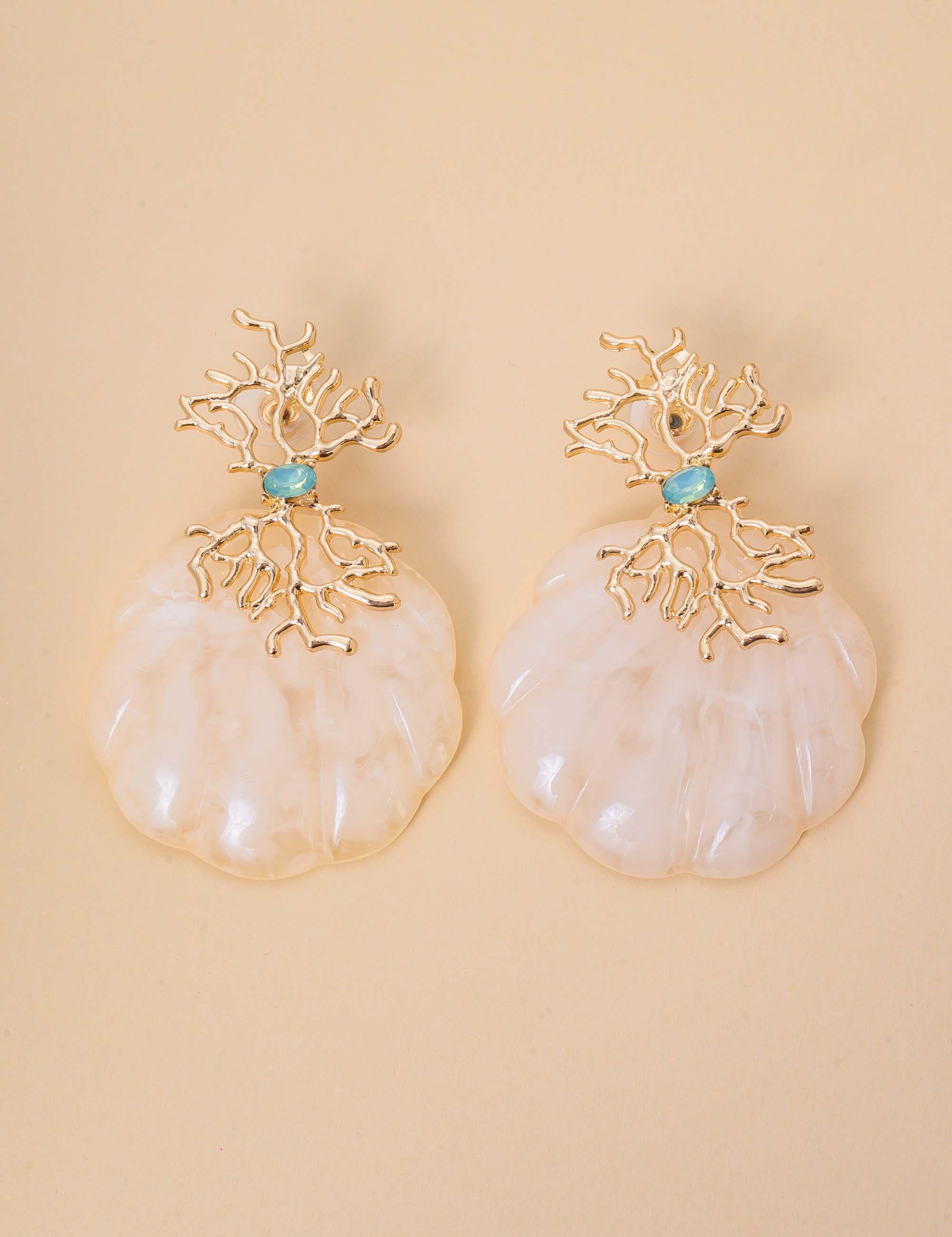 Brinco em Ouro, off-white com delicado brilho perolado, em formato de concha. Um toque sofisticado e feminino inspirado no encanto do mar.