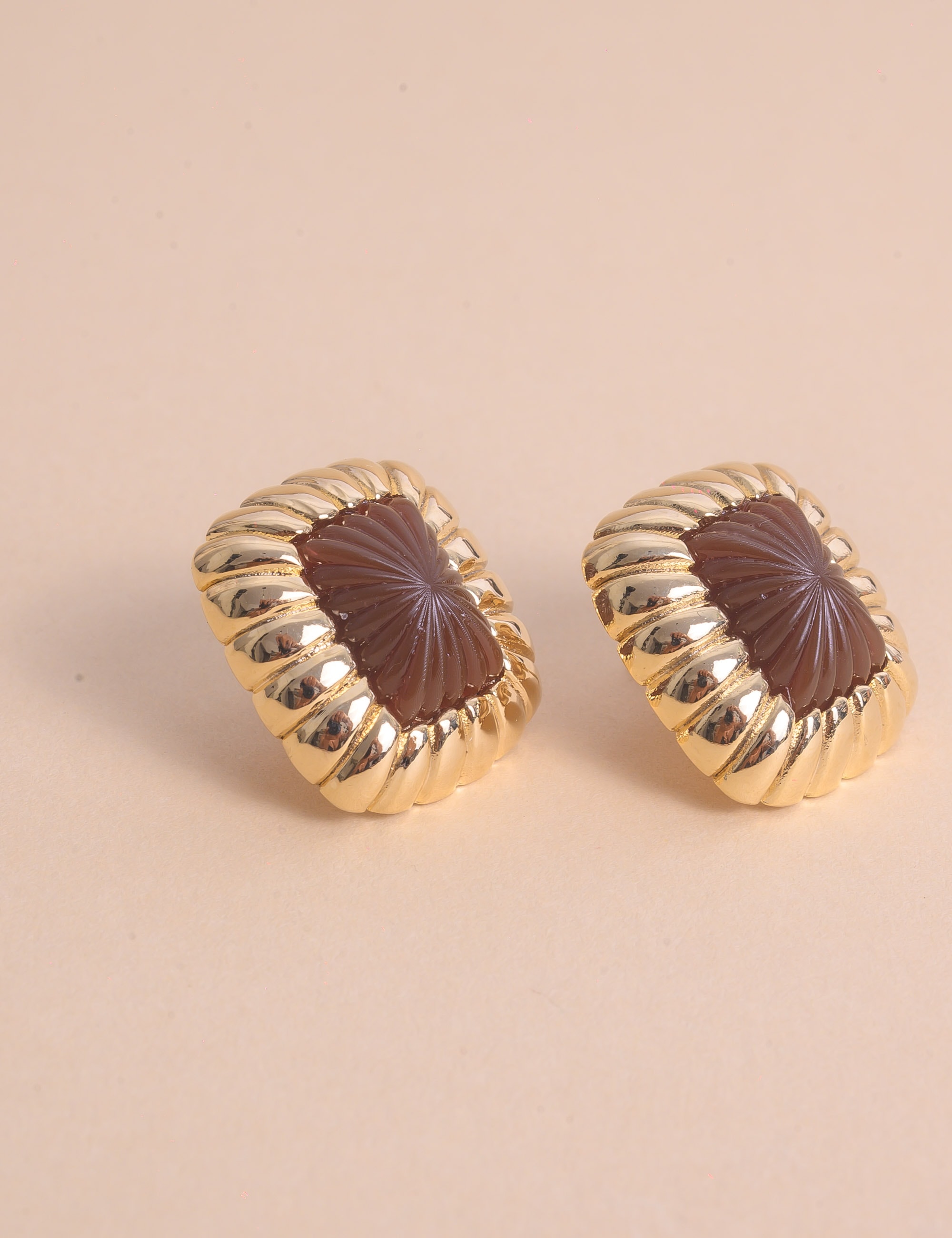Brinco elegante e moderno, resina marrom, sua base banhada a Ouro é perfeito para quem busca um toque sofisticado no dia a dia, criando um contraste refinado e harmonioso.