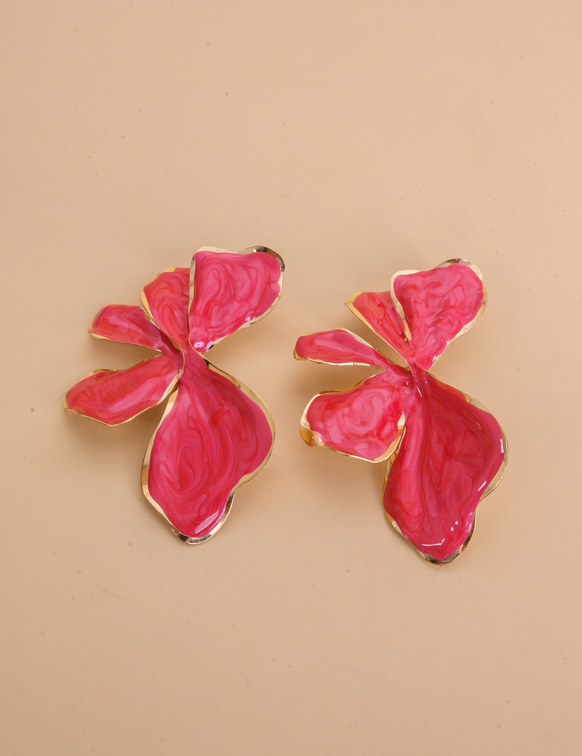 Brinco de ouro e resina na cor rosa, elegante e versátil, perfeito para adicionar charme e estilo ao visual.