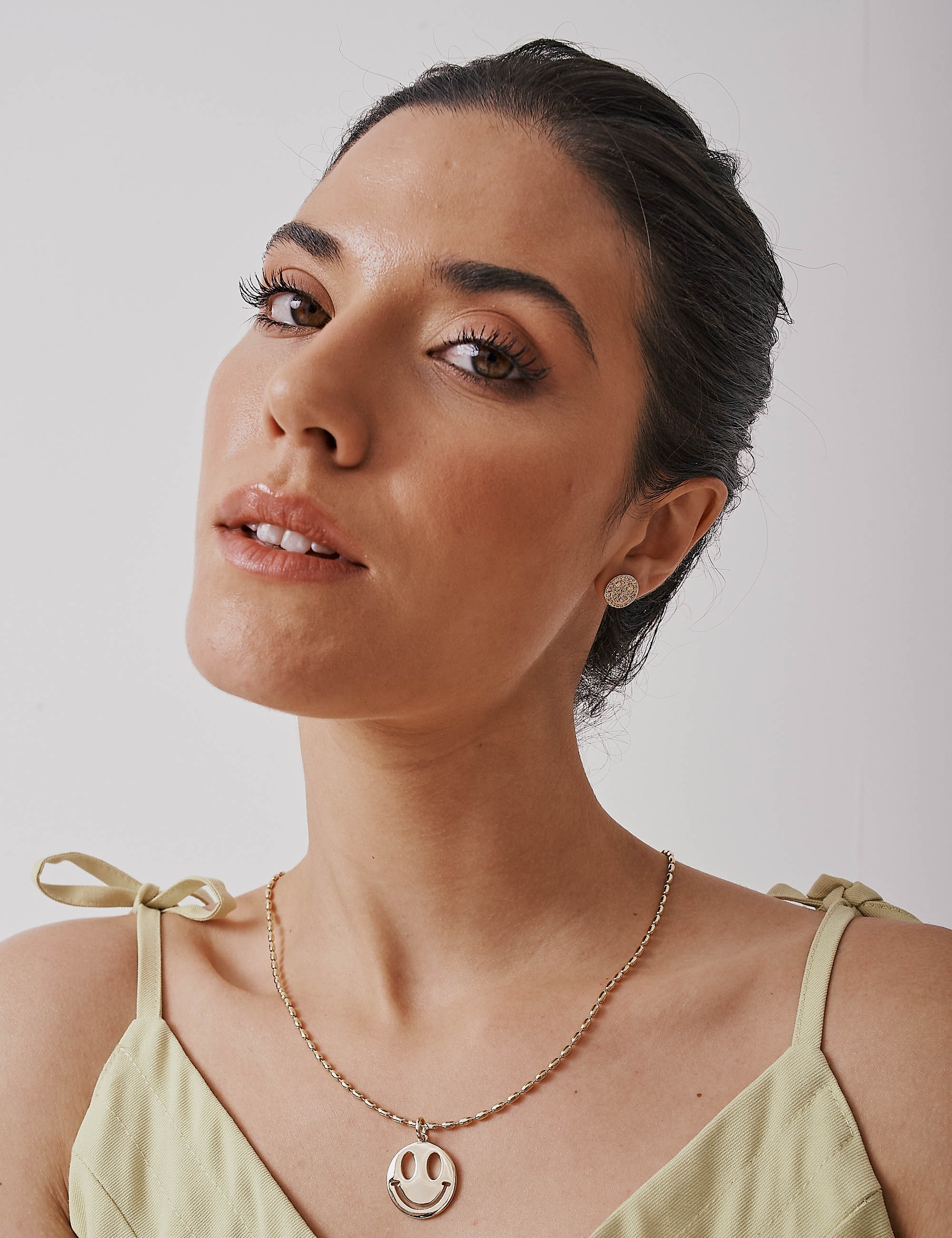 Este brinco em ouro traz um design inspirado no sorriso, simbolizando alegria e positividade. Cravejado com pequenas pedras brilhantes, ele destaca-se pelo brilho delicado e sofisticado, ideal para quem quer um acessório moderno e cheio de personalidade.