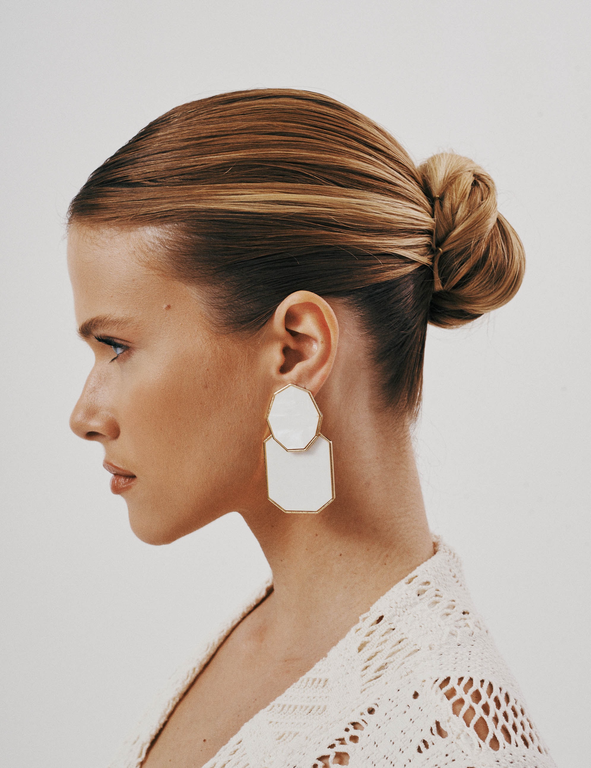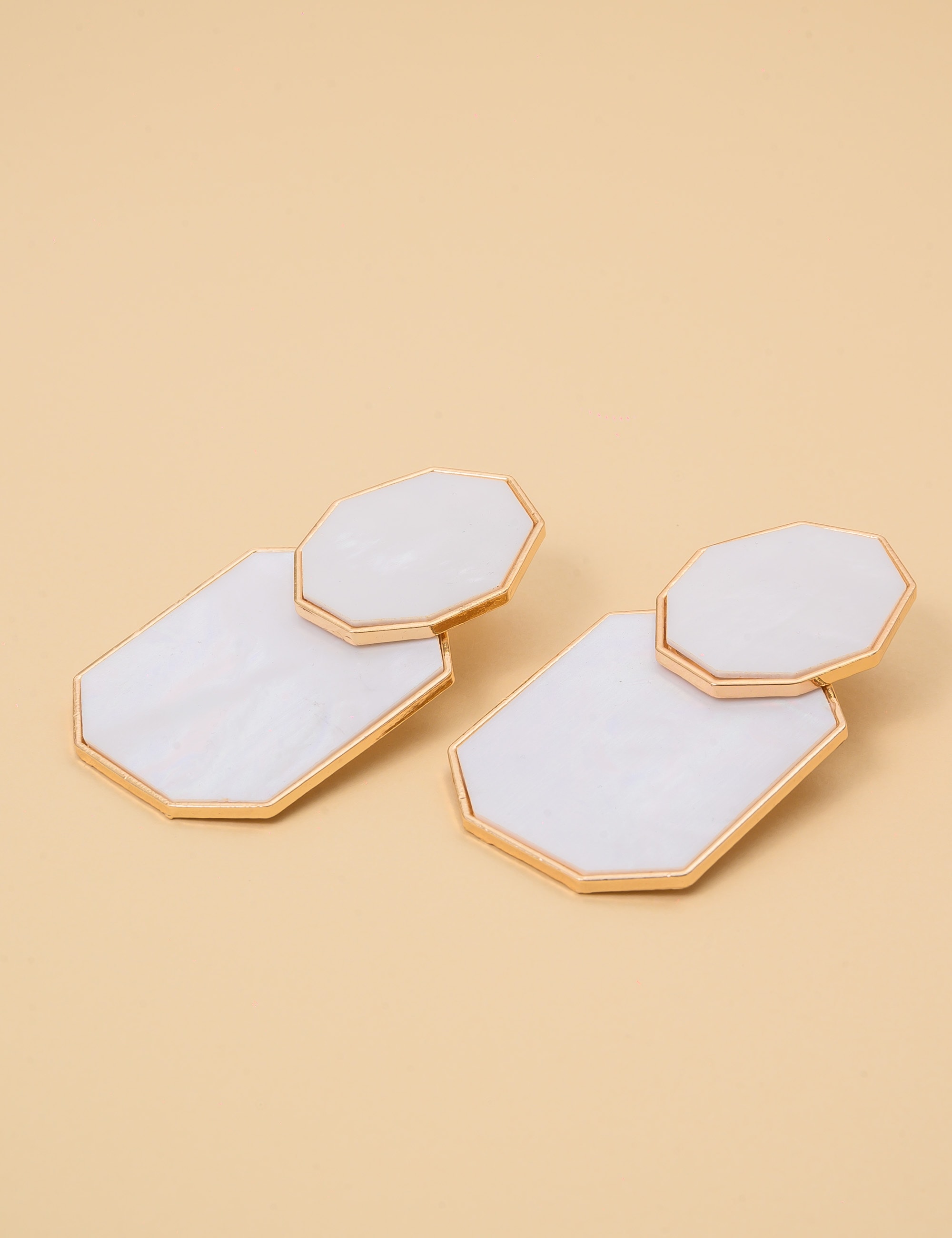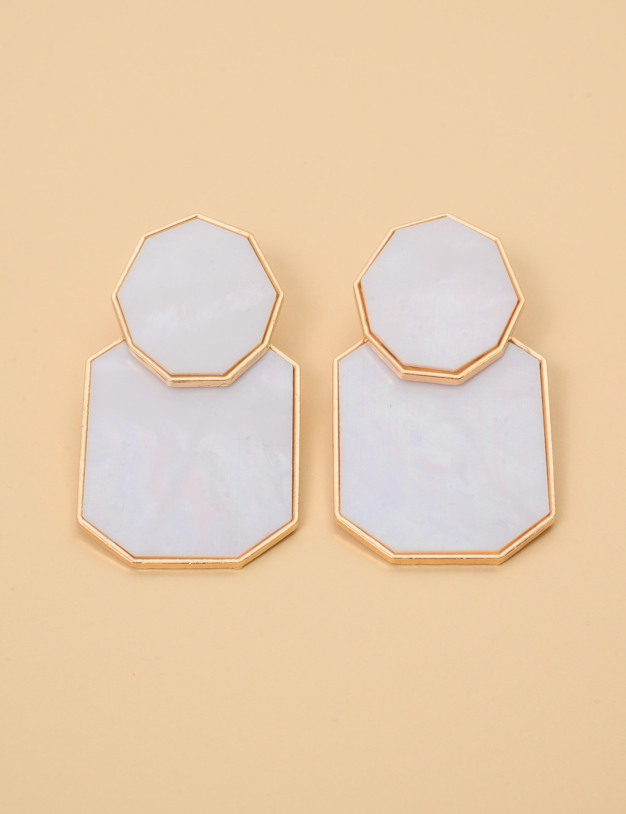 Delicado e sofisticado, este brinco resinado com efeito madrepérola encanta pelo brilho suave e acabamento elegante. A superfície iridescente imita a beleza natural da madrepérola, refletindo a luz com sutileza, enquanto as bordas banhadas a ouro realçam o contorno da peça com um toque refinado. Com design atemporal e leve, é perfeito para compor produções clássicas, românticas ou até mesmo minimalistas, adicionando um toque de brilho discreto e elegante.