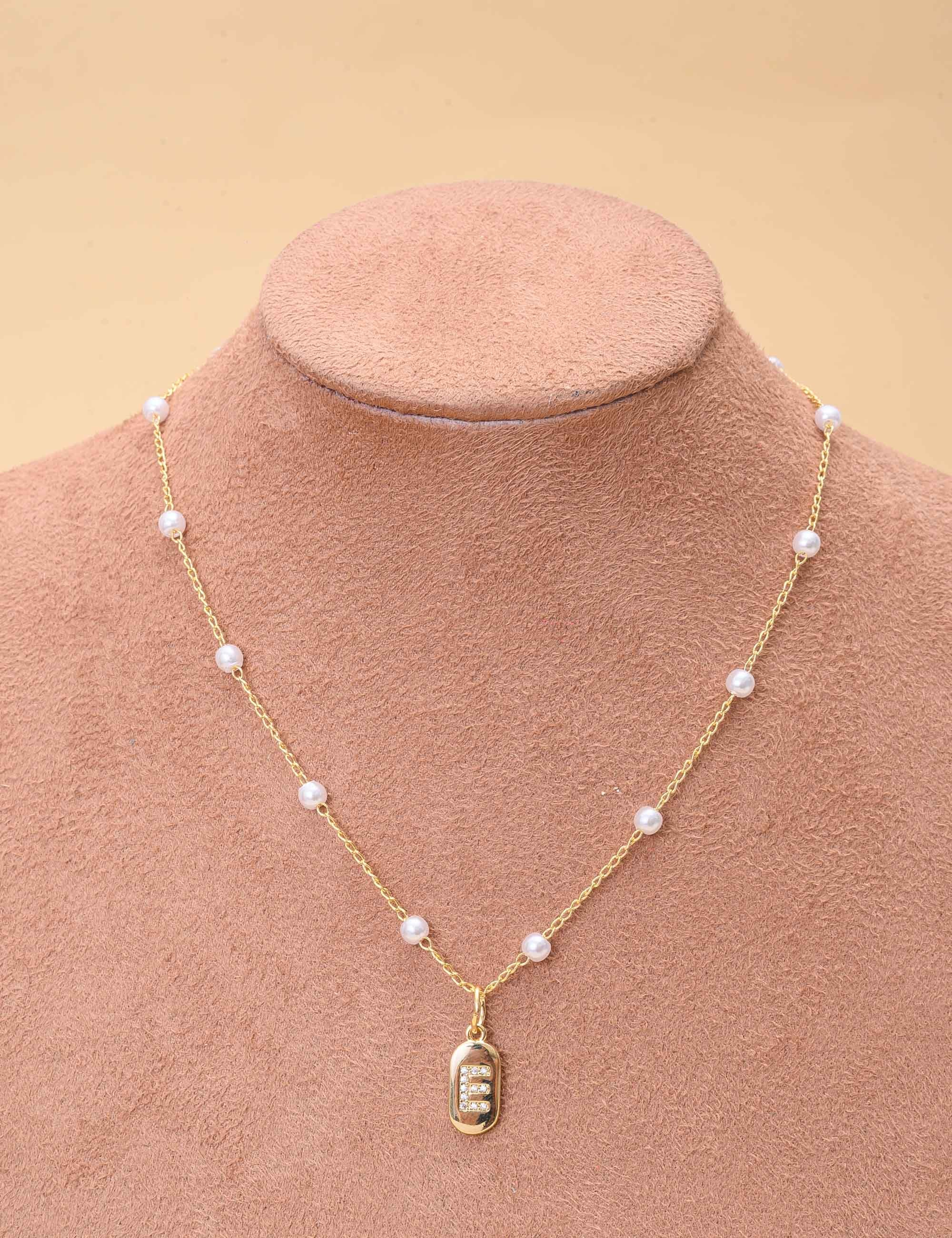 Colar de pérolas, pingente com a letra , trazendo um visual moderno e descontraído. O acessório combina estilo casual com acabamento sofisticado, valorizando qualquer produção com um brilho delicado.