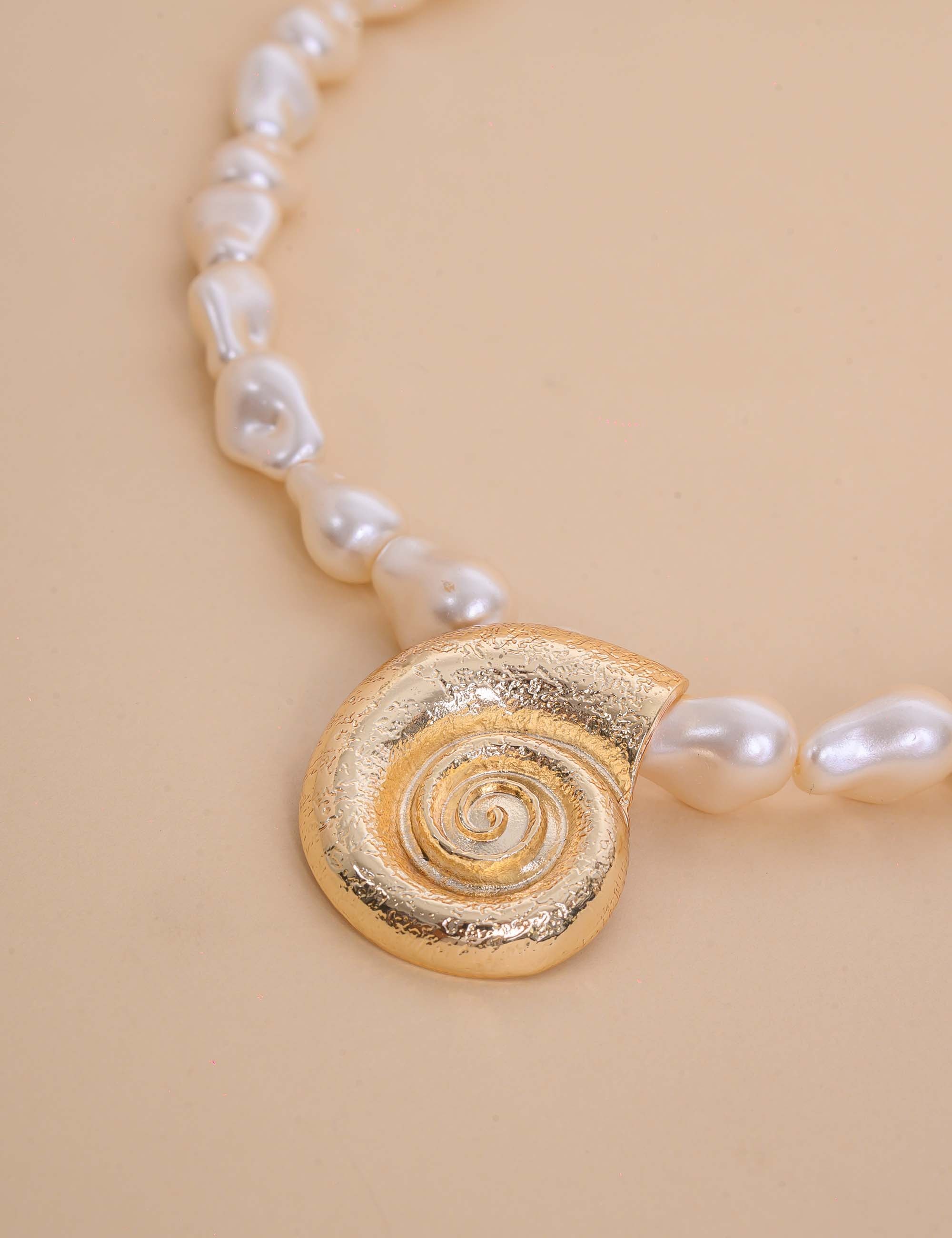 Colar de pérolas e pingente de concha banhado a ouro, moderno e cheio de charme para realçar qualquer look.
