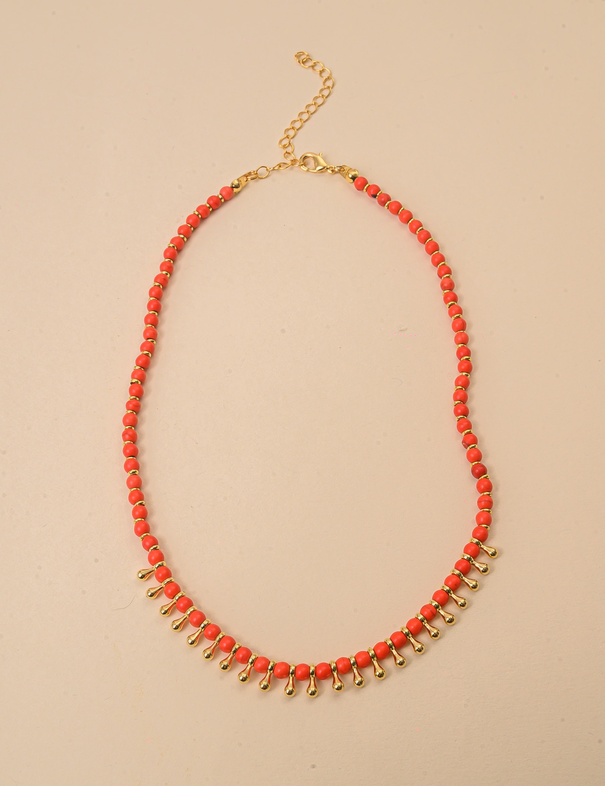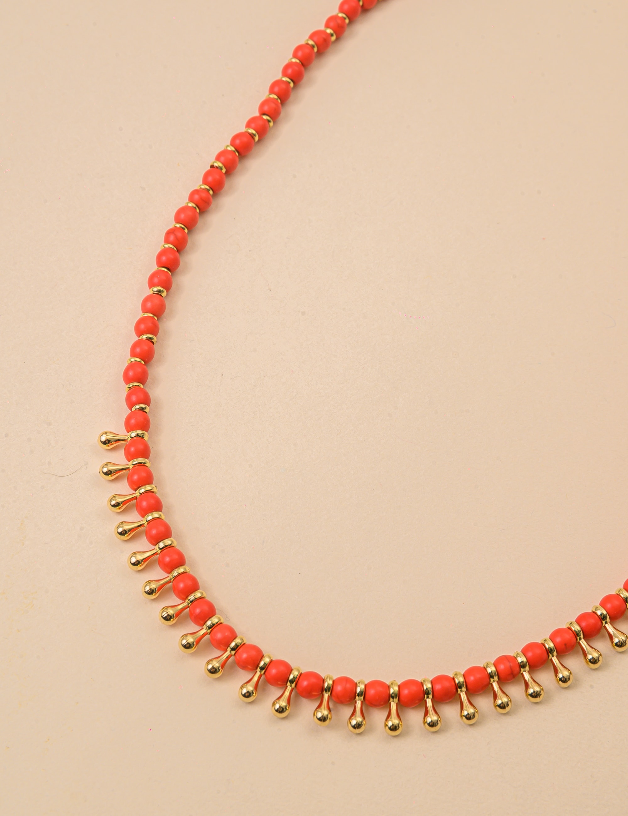 Colar de ouro com resinas na cor salmão, moderno e cheio de charme para realçar qualquer look.