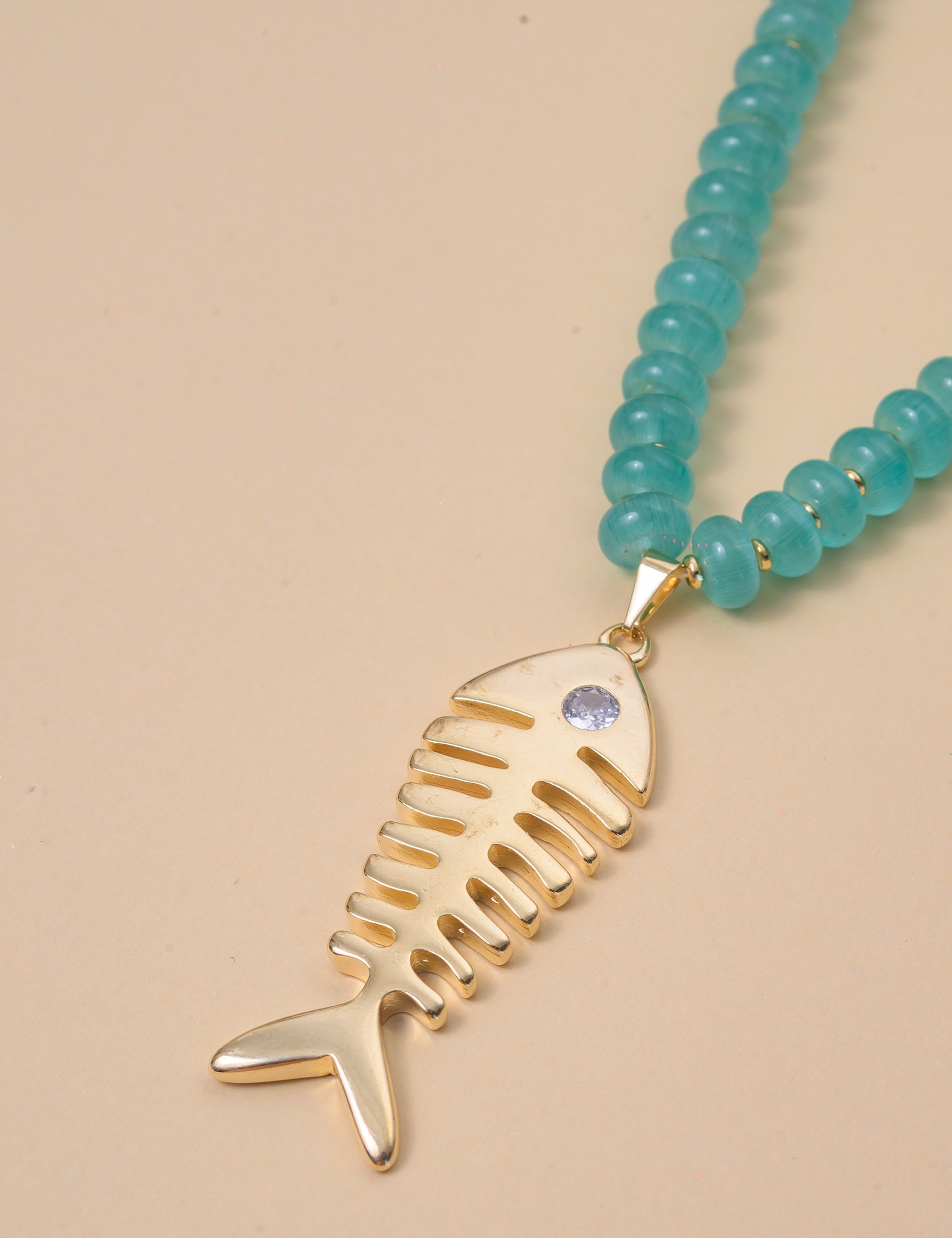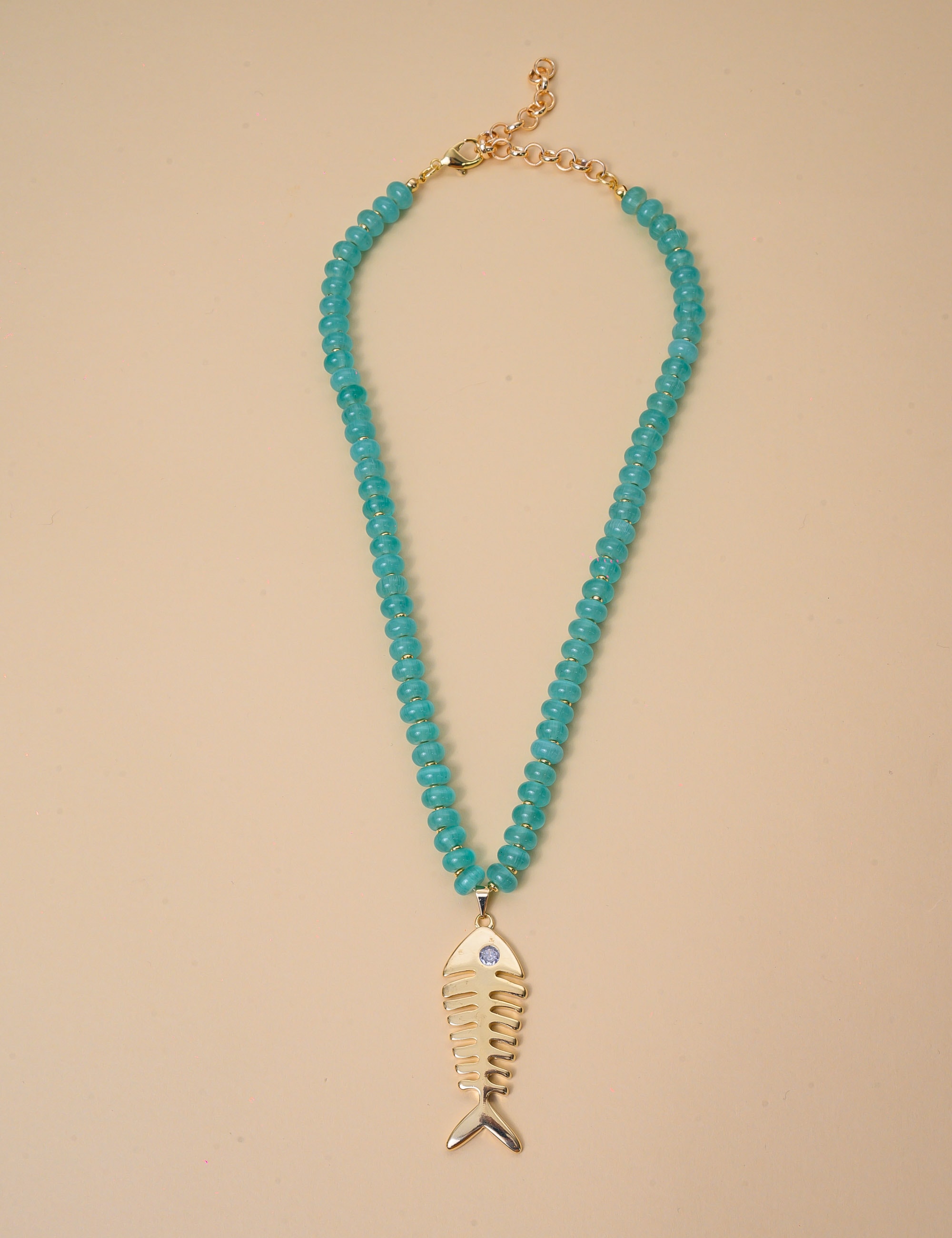 COLAR PEDRA VERDE PINGENTE PEIXE