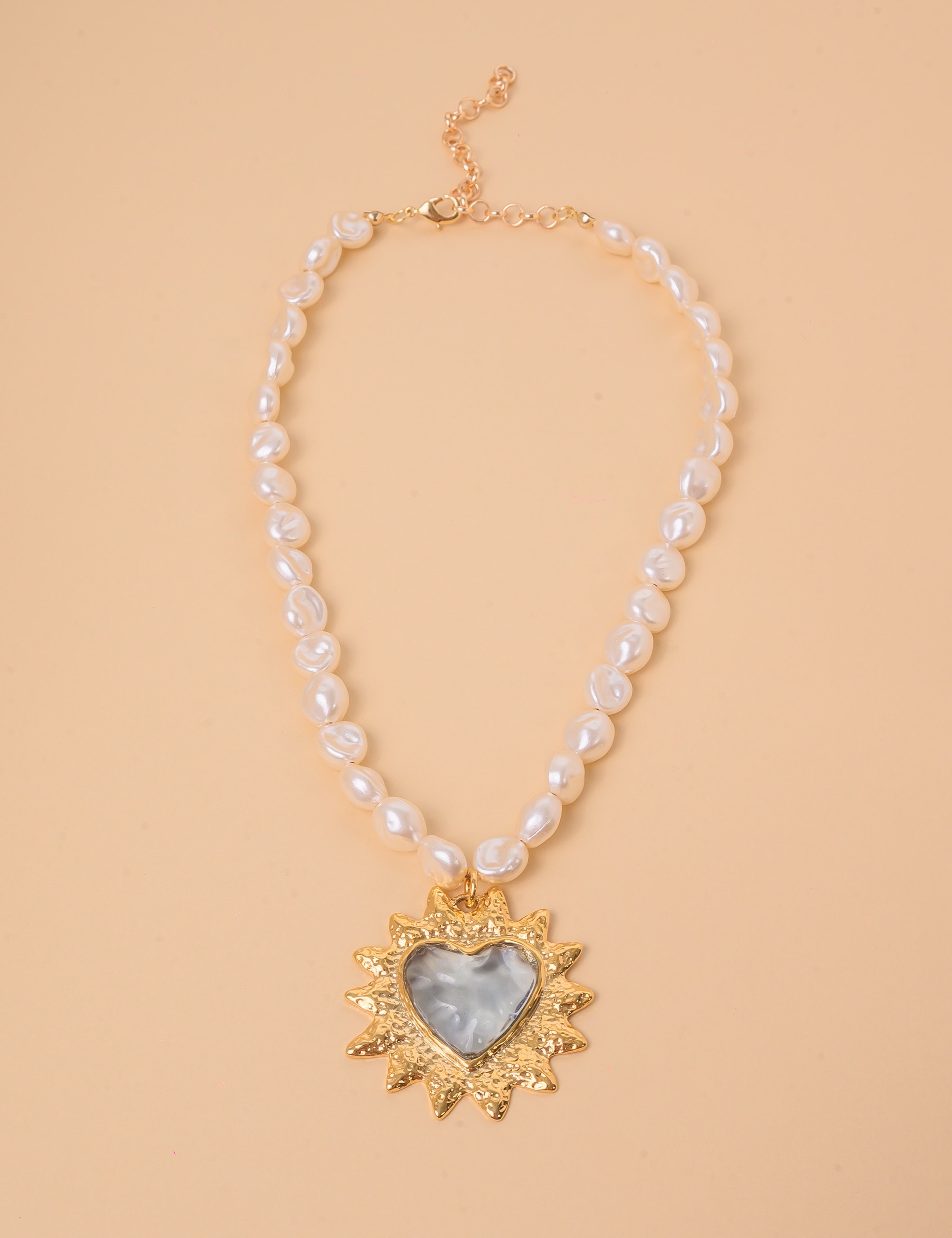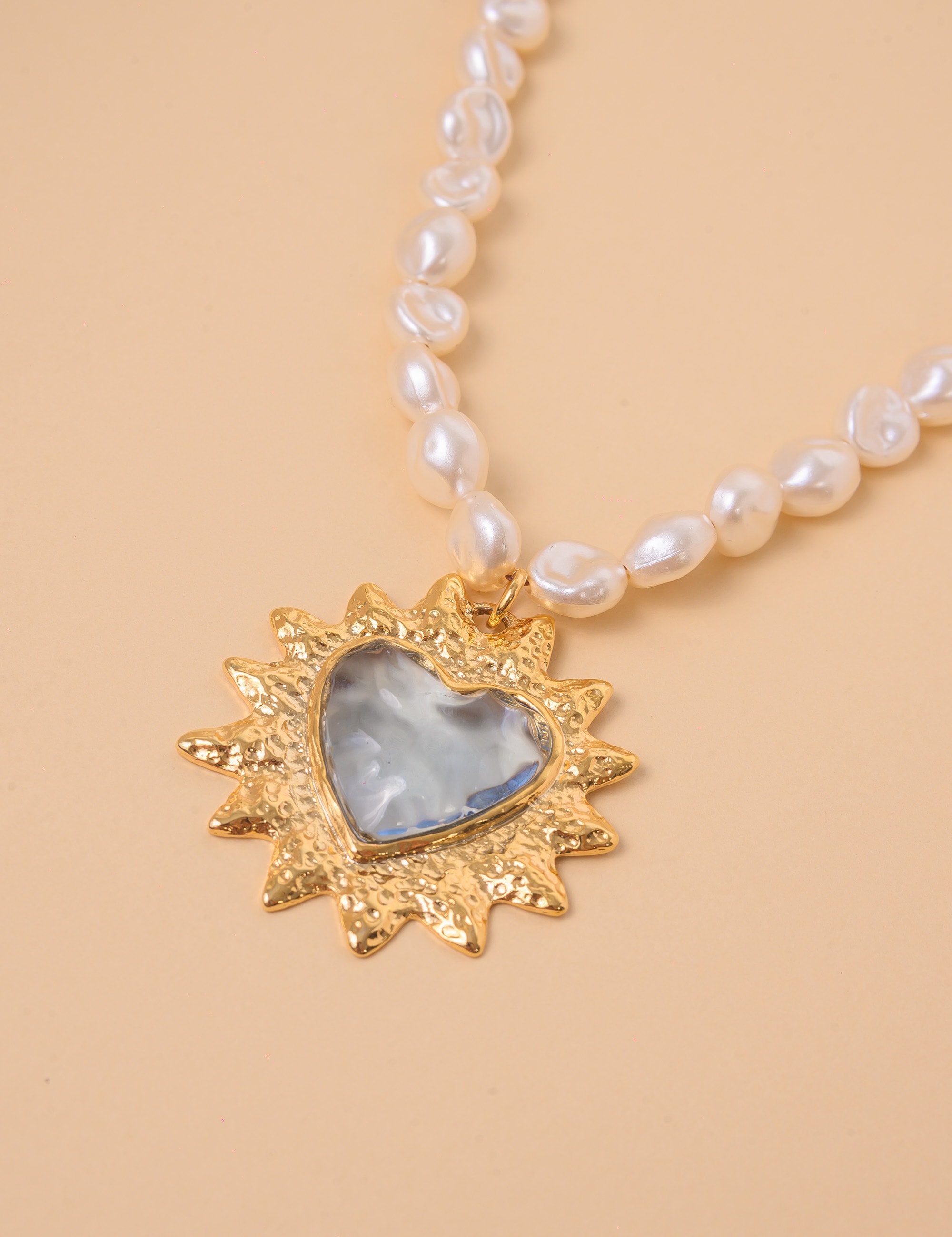 Romântico e elegante, este colar une a delicadeza das pérolas com o brilho encantador do pingente em formato de coração. O cristal central reflete a luz com sutileza, enquanto as bordas banhadas a ouro destacam ainda mais o contorno do coração, trazendo sofisticação à peça.