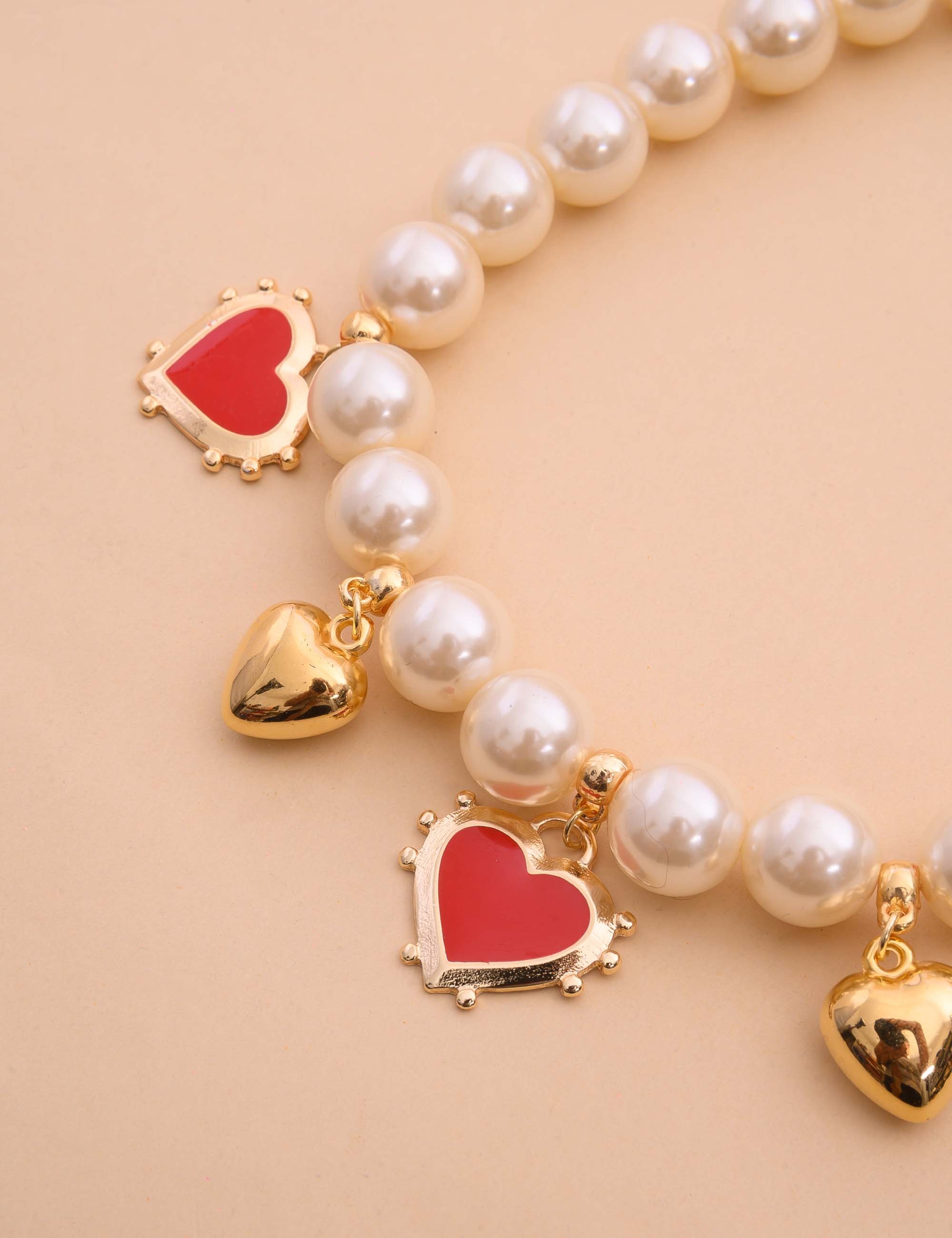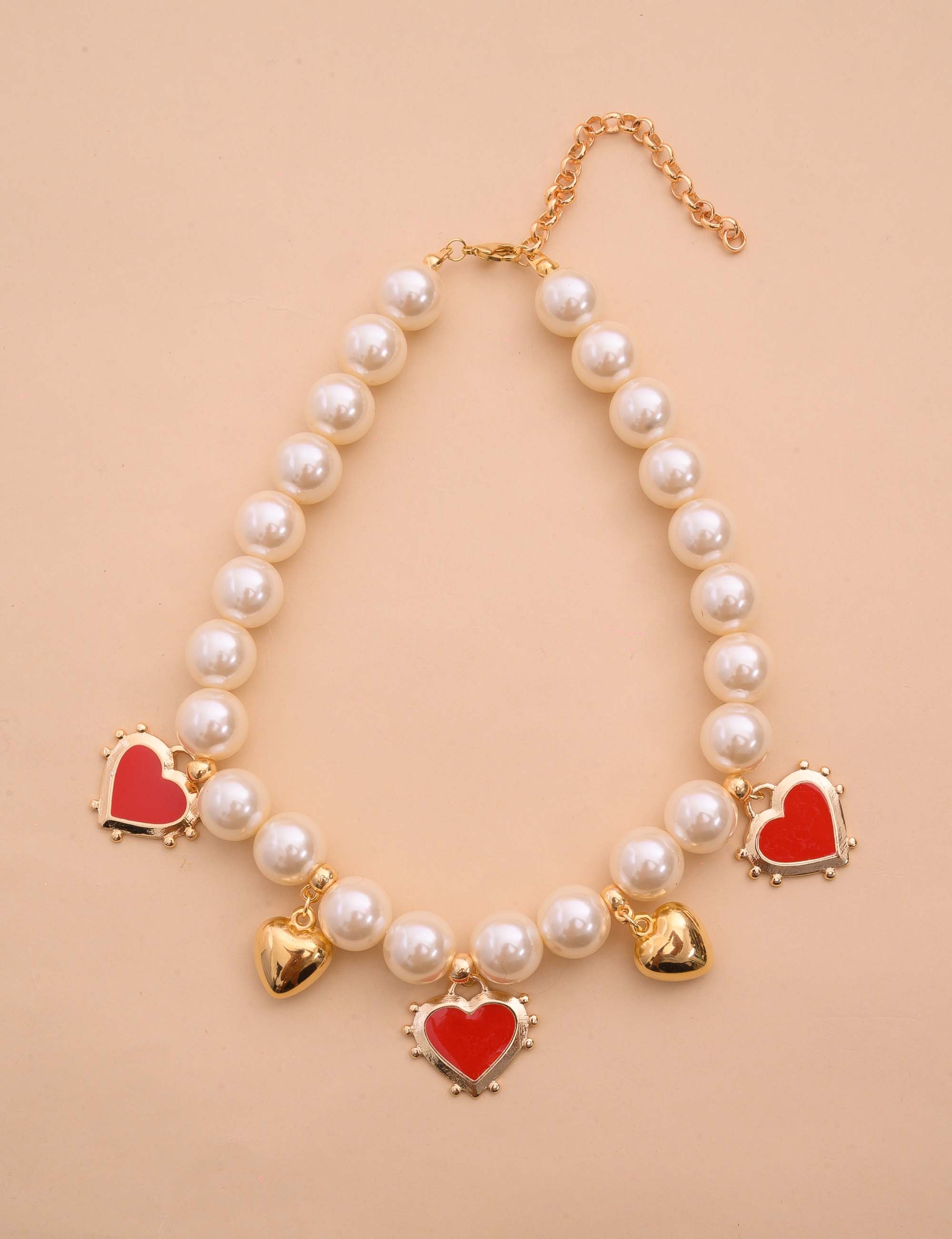 COLAR PEROLA CORAÇAO VERMELHO - CO29197VO02