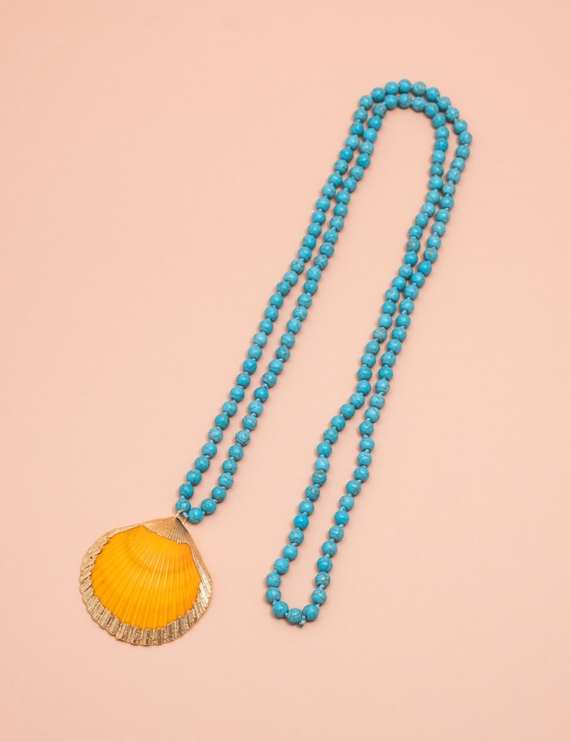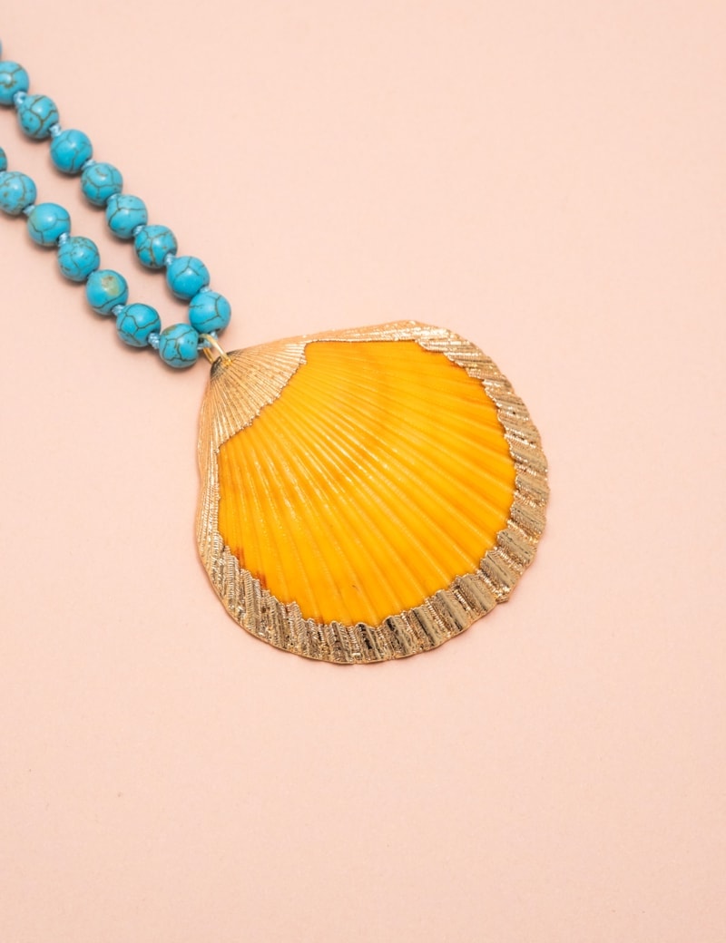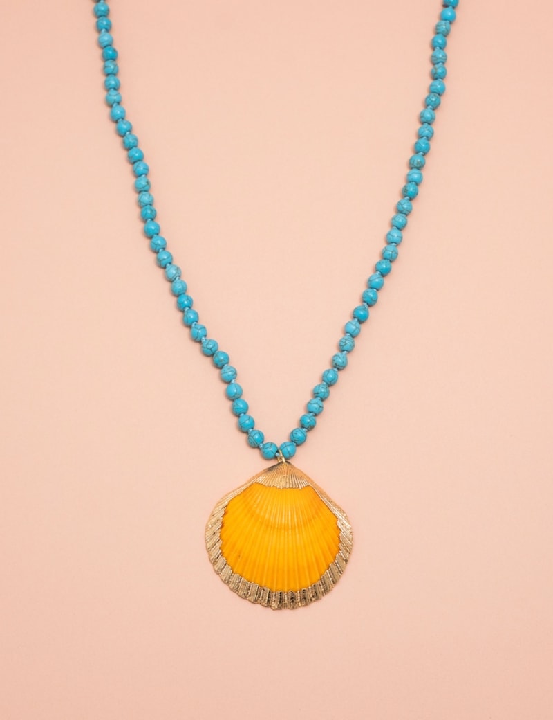 Peça: Colar turquesa com pingente de concha, sem fecho.
