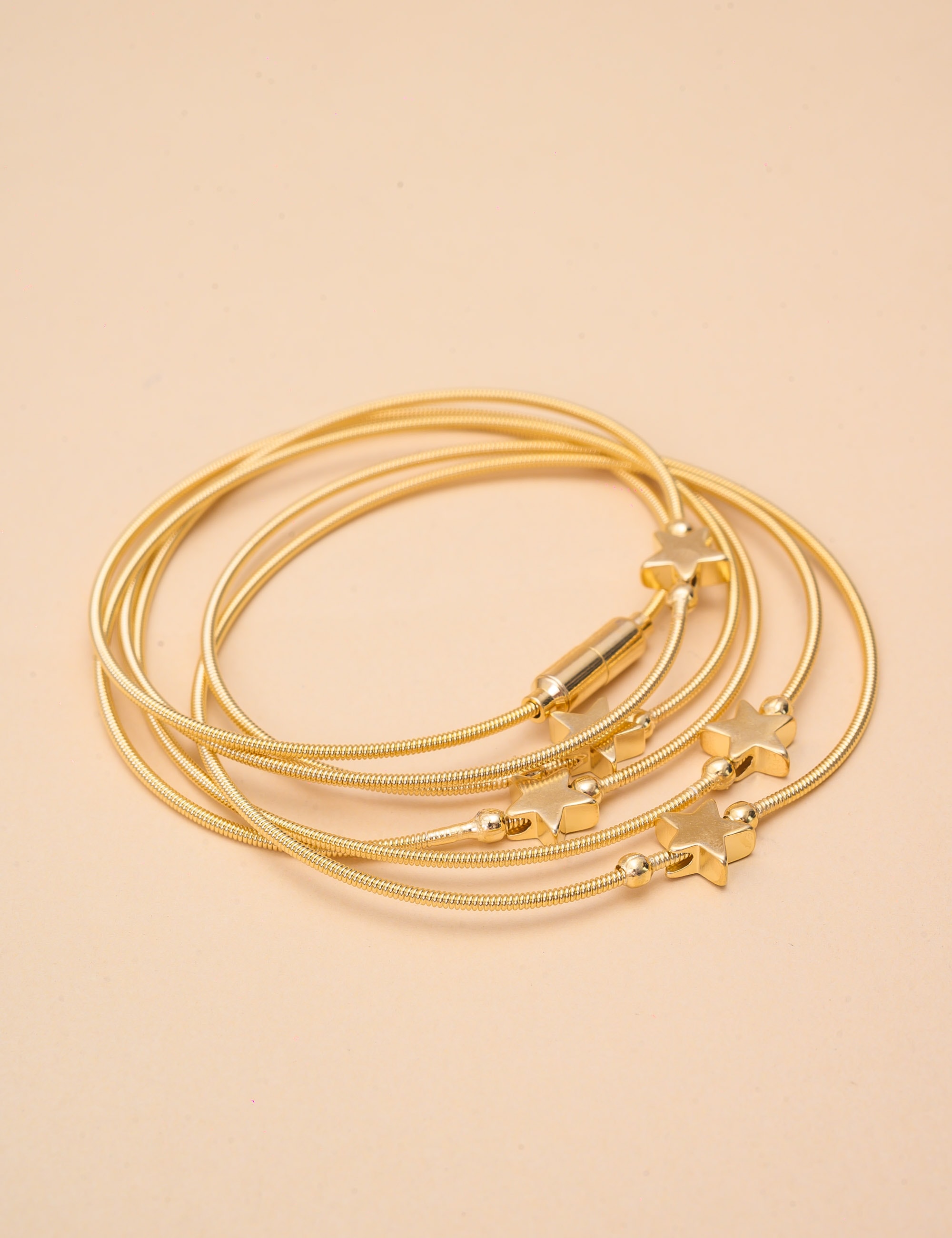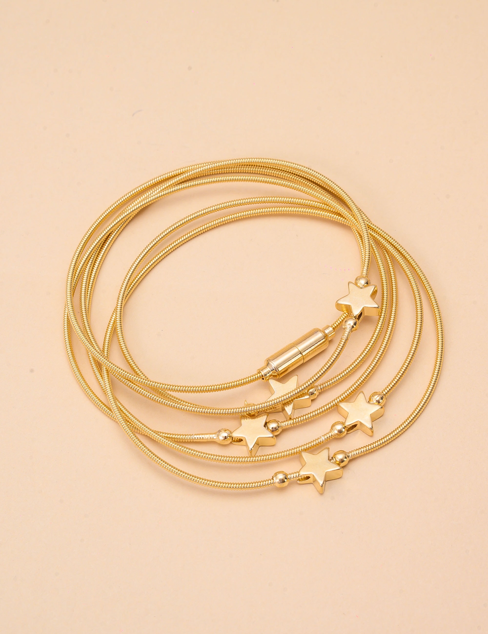 Pulseira de ouro, cordão de violão com pingentes de estrela, perfeita para destacar qualquer look com um detalhe único e estiloso.
