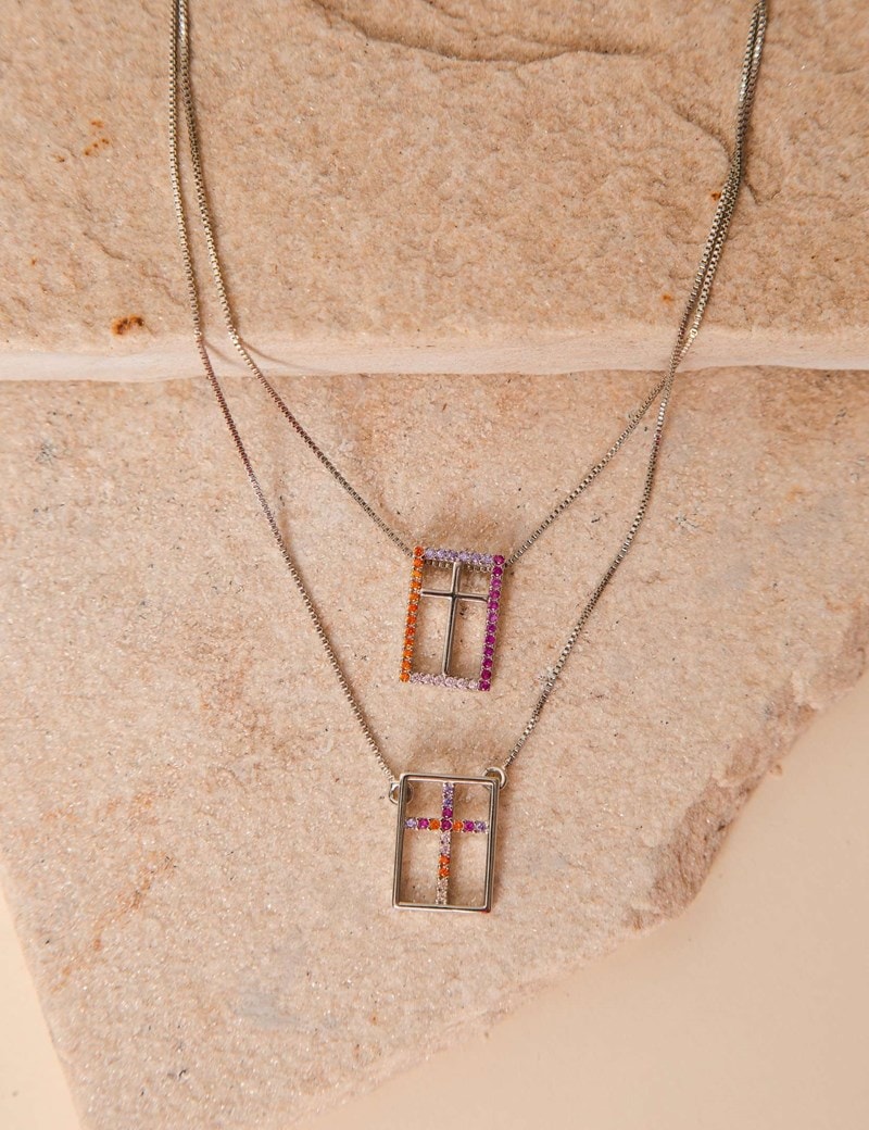 Escapulário Cruz Colors Silver
